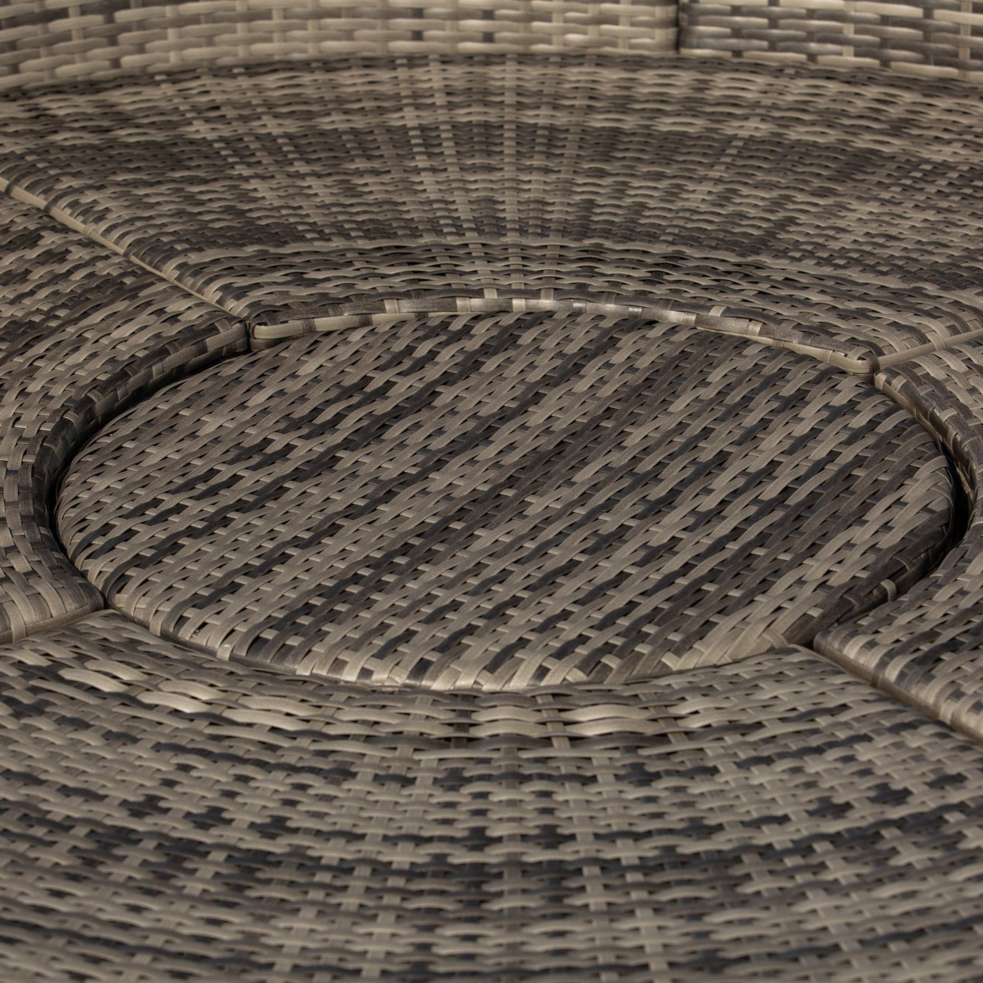 Rattan Garden Furniture Cushioned Wicker Round Sofa Bed with Coffee Table Patio Conversation Furniture Set - Grey