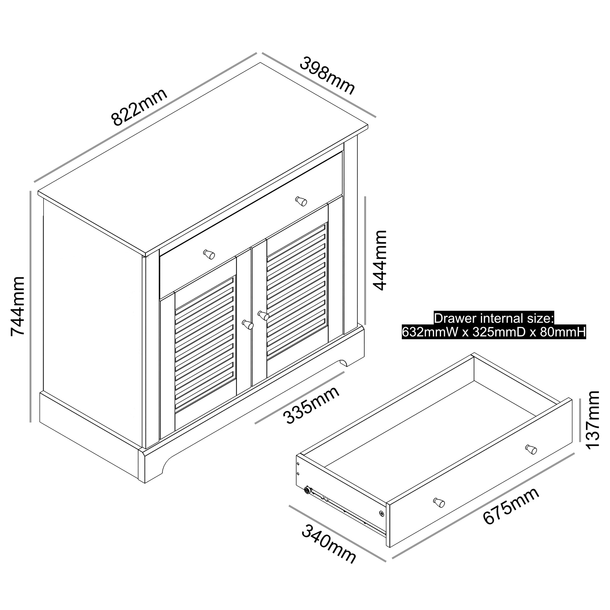 Salcombe Sideboard Light Grey 2 Doors 2 Shelves 1 Drawer