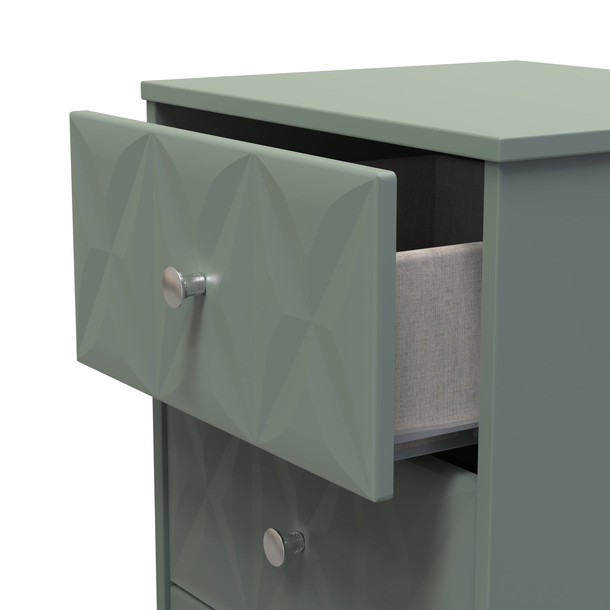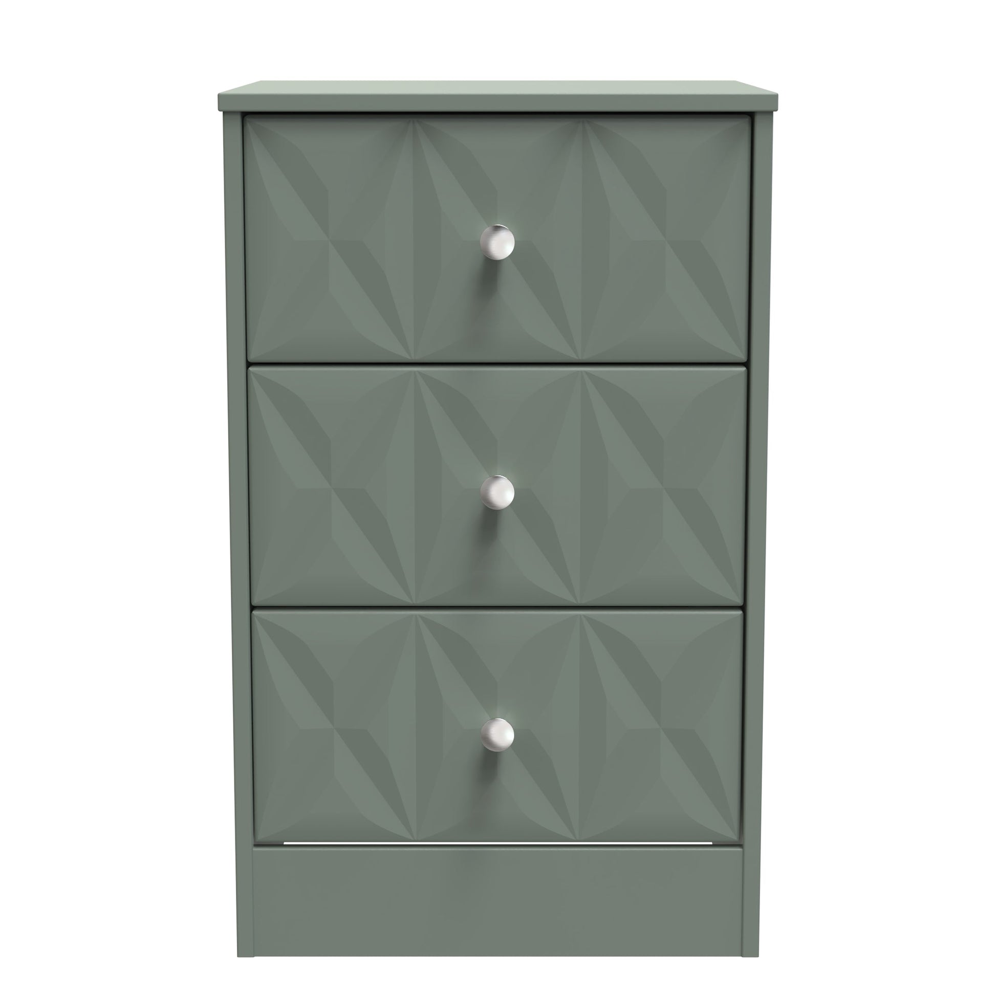 This 3 drawer bedside cabinet is practical and stylish. Perfect for any bedside or as a free standing storage unit. This modern range brings a mix of gently shaped fronts and crisp stainless steel handles to your bedroom. Providing the perfect interior solution to add subtle style to your room. Part of the San Jose Collection.