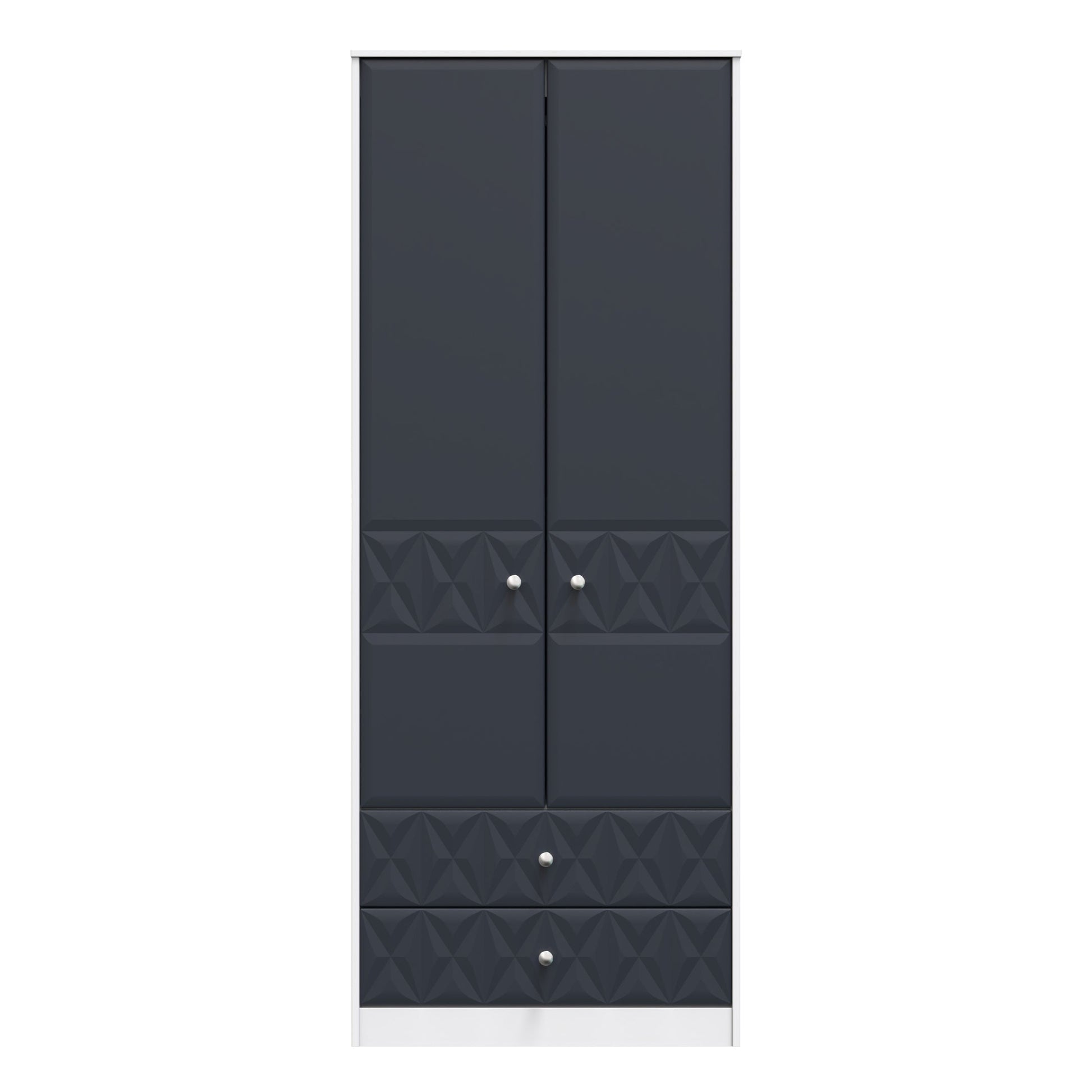 San Jose Tall Wardrobe Dark Grey & White 2 Doors 2 Drawers 77cm