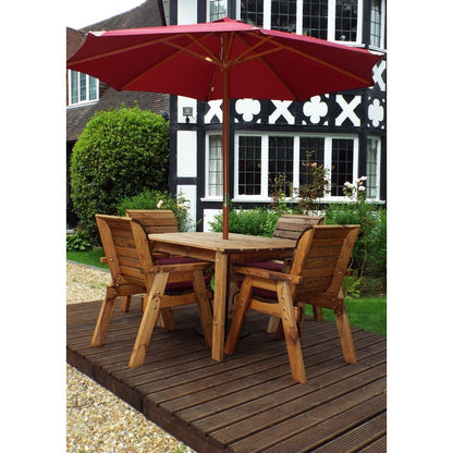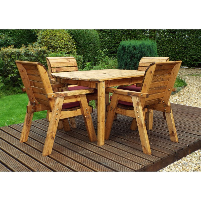 Scandinavian Redwood Garden Patio Dining Set by Charles Taylor - 4 Seats Burgundy Cushions