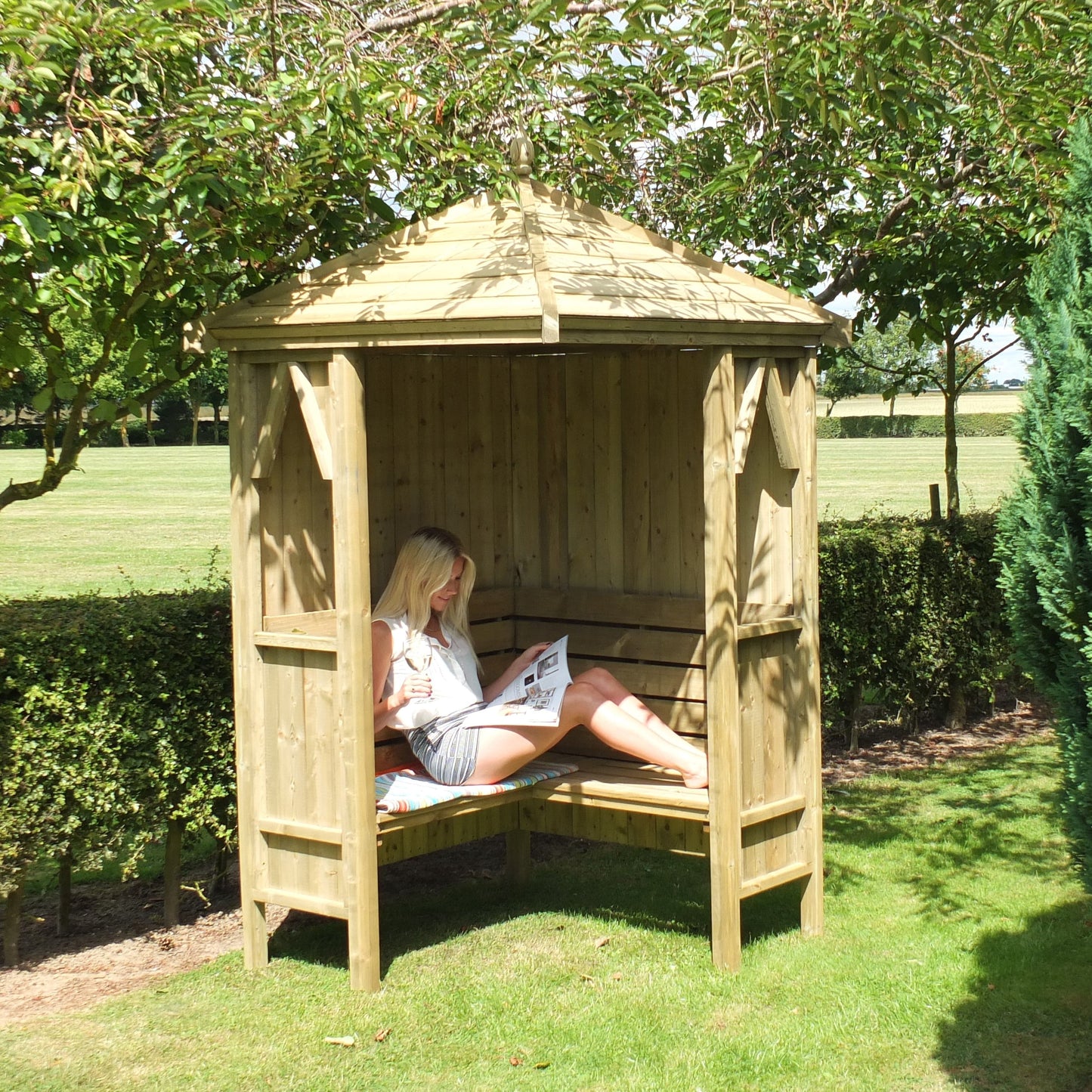 The Honeysuckle Corner Arbour is a wonderful way to utilise an unused corner of your garden or patio. (Imperial dimensions are approximate to the nearest foot). The arbour creates a beautiful feature that is also a useful addition giving you a lovely spot to enjoy a cup of tea. The bench seat inside takes 2 in comfort to provide that much needed shade or even shelter dependent on the UK summer weather! This Highwood arbour is manufactured from high grade, slow grown, FSC approved, northern European pine which has been pressure treated to protect it from rot and insect attack for many years. Supplied in its natural pressure treated finish, painted model shown is for illustration only.