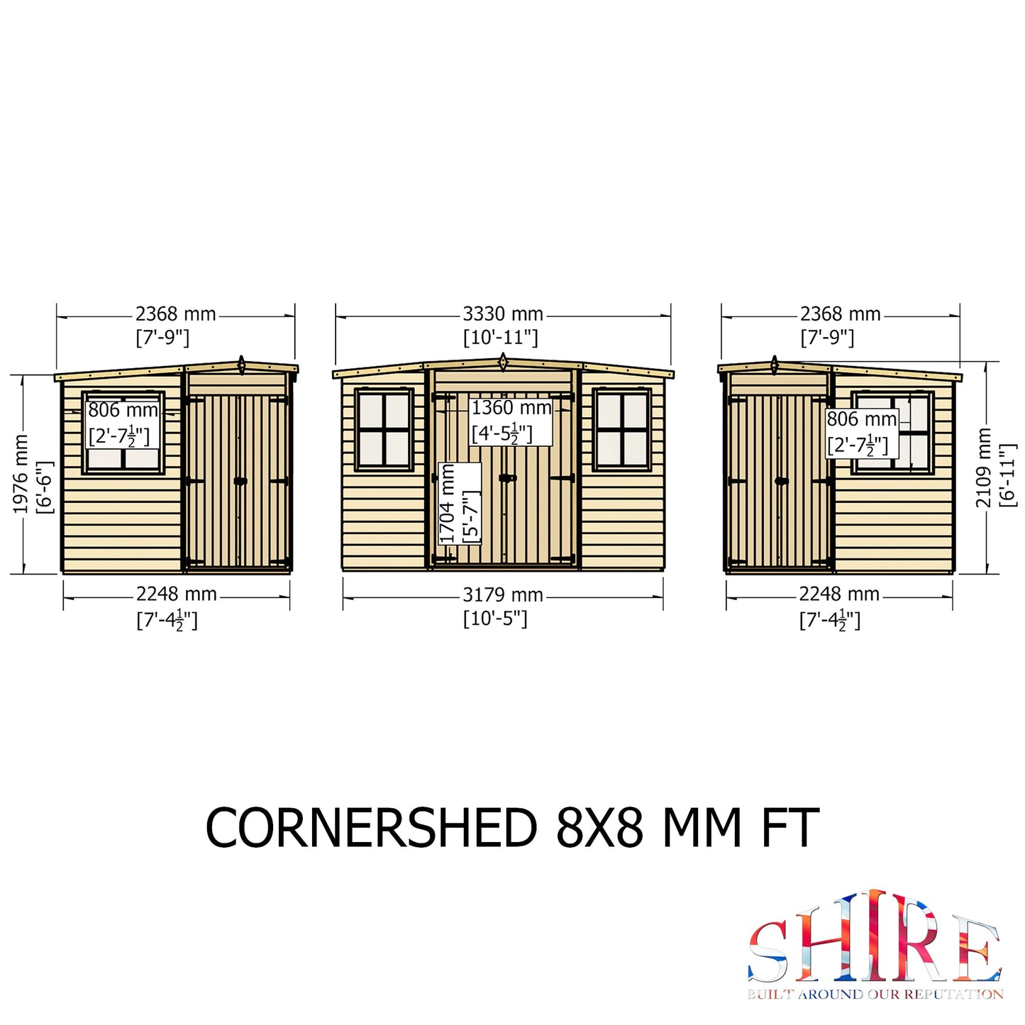 Corner 7' 1" x 7' 4" Flat Shed - Premium Dip Treated Shiplap