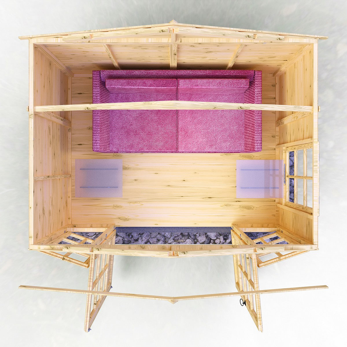Please note - size 6' 11" x 8' 6" is approximate and based on a bird's eye view of the structure, including the roof.