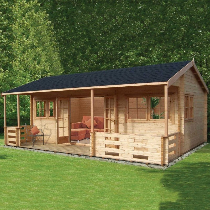 Shire Kingswood 17' 8" x 19' 4" Reverse Apex Log Cabin - Premium 70mm Cladding Tongue & Groove