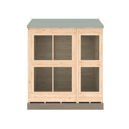 The traditional rectangular shape makes the structure easy to construct and maintain. The apex roof will distribute precipitation evenly and provide headroom in the central walkway. The shiplap cladding will provide strong support for the structure of the building and resist the elements. This building has been pre-treated with a quality, water-based, non-toxic, anti-fungicidal base coat, ready to accept the finish of your choice. and the 12mm cladding contributes to the building's strength and durability. This building has 6 windows to provide natural light and visibility.