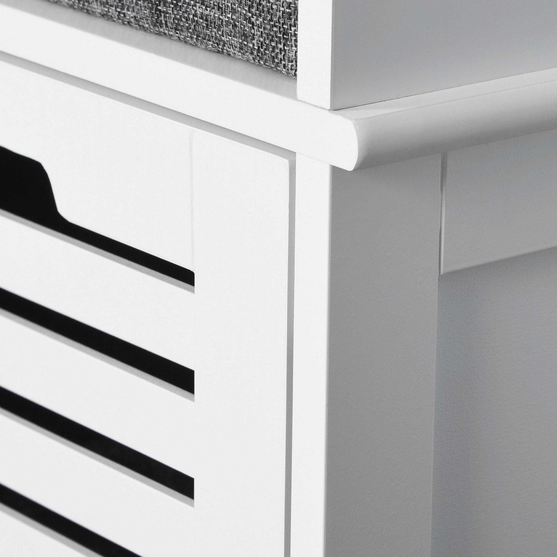 Give your shoes somewhere proud to stand with this storage unit from HOMCOM. Its design is made of three compartments for lots of holding space, with a flat cushioned top so you are able to sit on it. Made from MDF, the frame is tough and reliable for everyday use. Using sponge for the cushion for comfort, it is wrapped in linen so it is smooth and easy to wipe clean. The slatted doors of the compartments allow fresh air to circulate through, with low corner feet elevating the unit to finish.