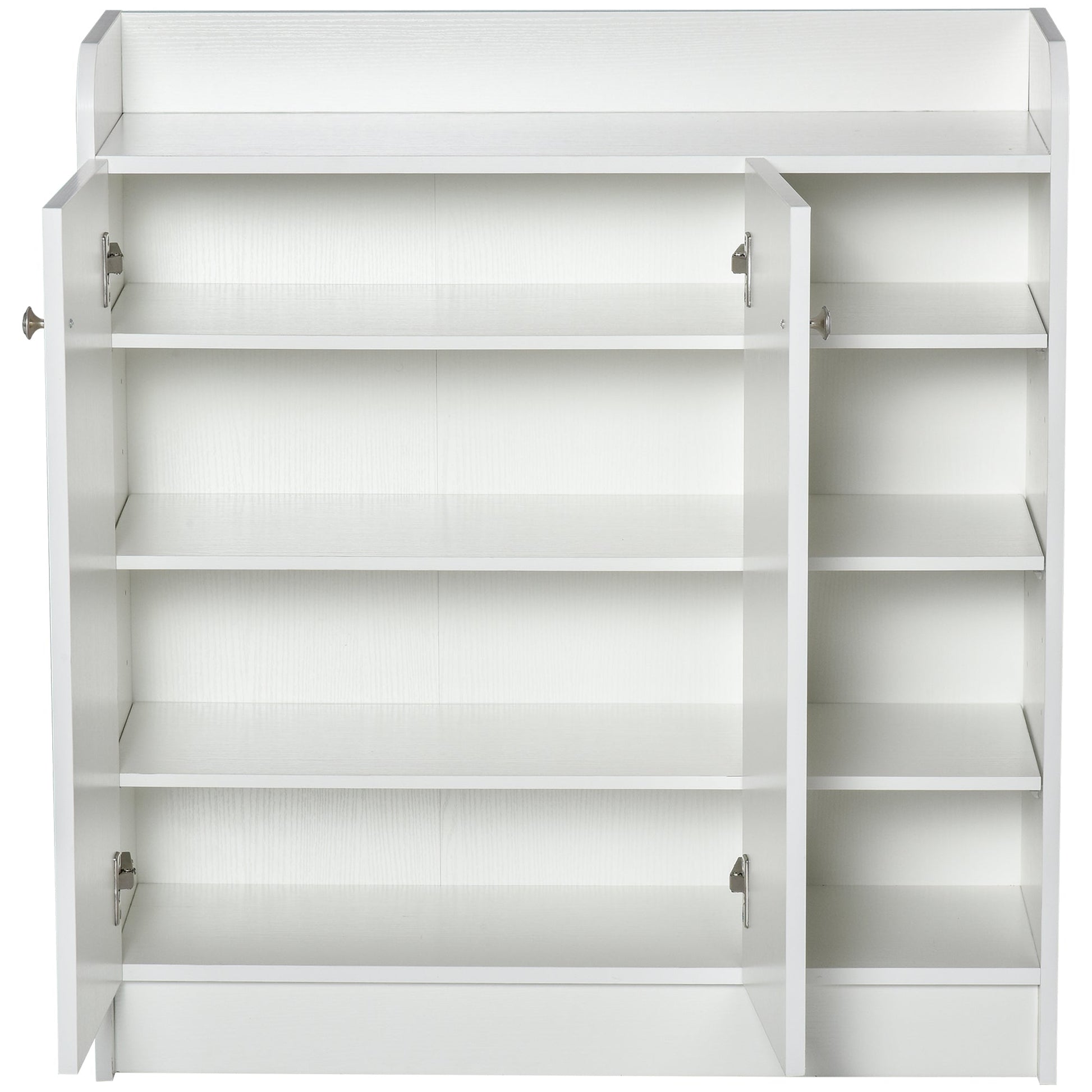 The shoe cabinet from HOMCOM is designed to offer an ideal storage solution which perfectly fits any decor of your room. It comes with a 4-tier open and 4-tier closed area, where the shelves can be adjusted up and down helping store and organise up to 12 pairs of shoes neatly to keep your hall or entryway tidy and clear. Made from durable E1 chipboard it ensures a long term use. The modern design with aluminium alloy handles, it will easily match any room decor in your home or office.