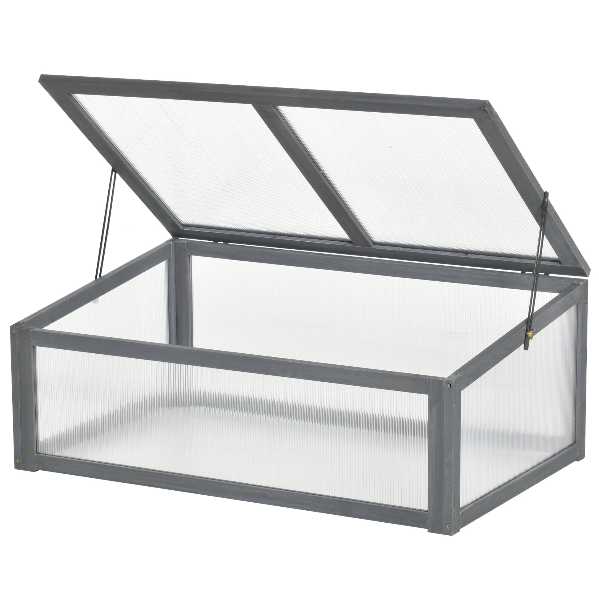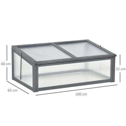 Square Wooden Outdoor Greenhouse w/ Openable Cover PC Board 100 x 65 x 40cm Grey