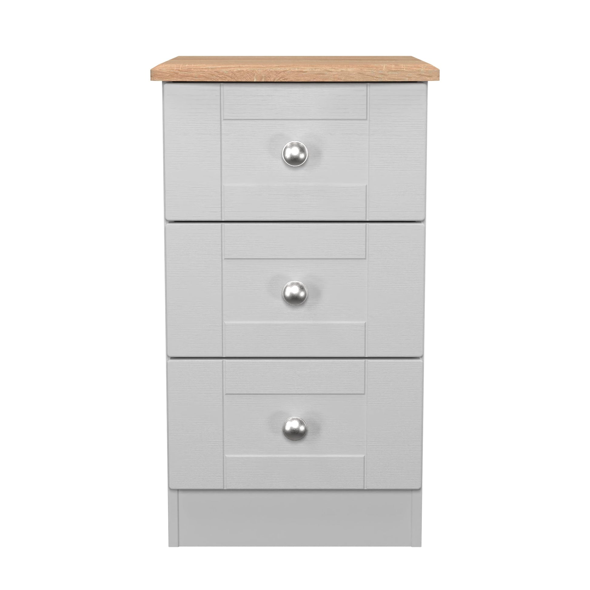 Sussex Bedside Table Grey & Light Oak 3 Drawers 40cm