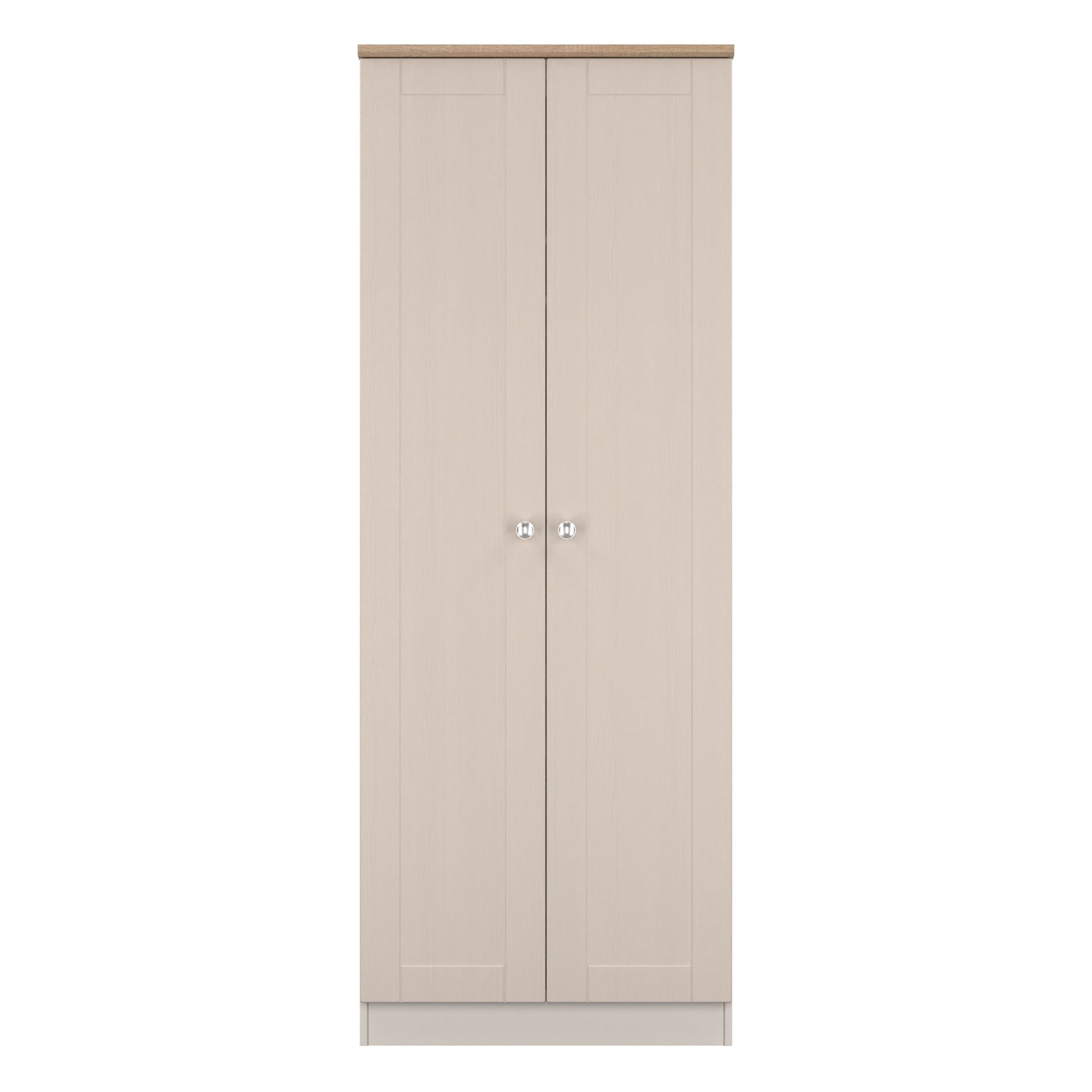 This tall double door wardrobe is perfect for any bedroom. Wood grain effect, panelled design, recessed fronts, contrasting wood top and chrome handles, this traditional Range is a beautifully elegant collection. With this range you have the freedom to choose from a wide range of furniture configurations, allowing you to create the perfect combination to optimise your storage space. All our furniture is made to order in the United Kingdom, to the highest quality. It is delivered within 10 working days direct to your location of choice by one of our two man delivery teams, and comes fully assembled - Please Note that any handles or legs may be removed durning transit to avoid the risk of damage. Part of the Sussex Collection.