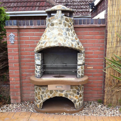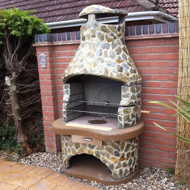 Please do not hesitate to call if you require any further information about this popular BBQ. This item is delivered on a pallet utilising a lorry. Delivery time is generally up to 3 days but is subject to us being able to make contact with you to discuss arrangements and ensure you will be in to receive the goods. The assembled BBQ measures - total height = 195cm; width of ground plinth = 99cm; mantelpiece width (and total width) = 112cm; max barbecue depth from front to rear = 68cm. Weight: 750kg.