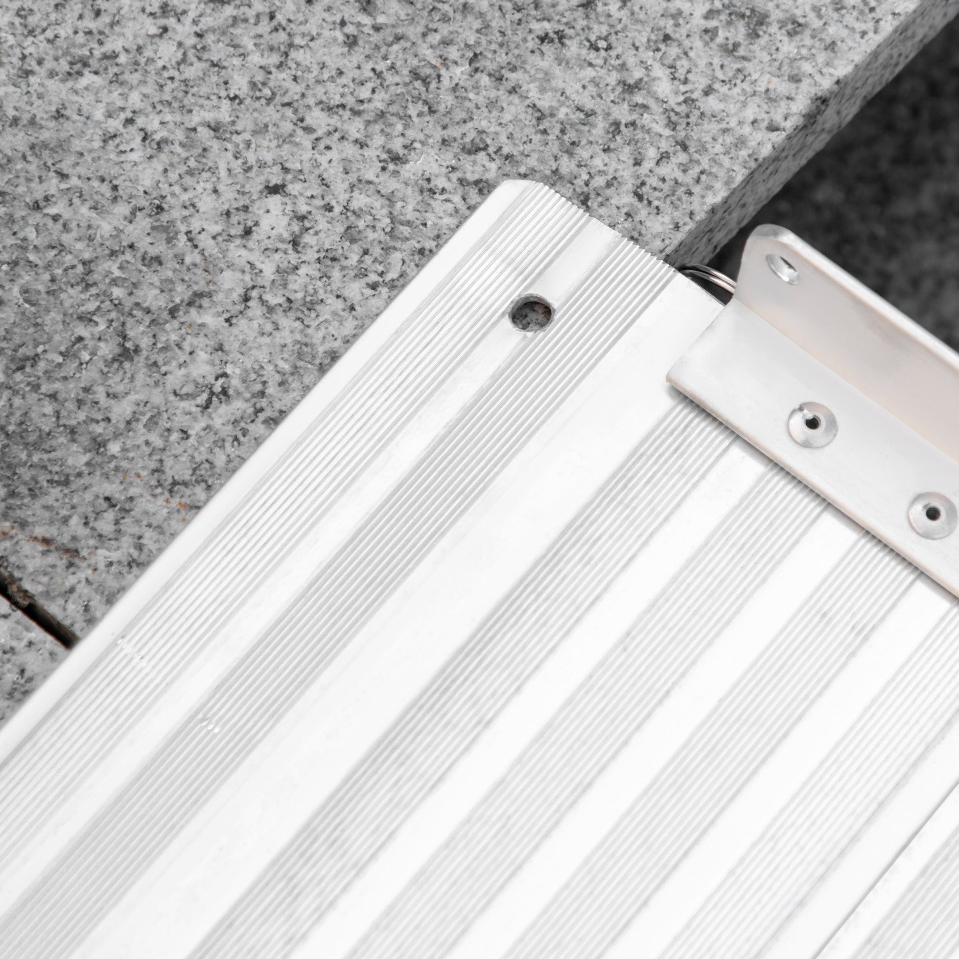 Let HOMCOM help create complete, easy mobility with our wheelchair ramp. Built from a sturdy, anti-corrosive aluminium alloy, this portable ramp uses a ribbed surface to prevent sliding in any weather and has two high side walls to help prevent accidental falls. The threshold ramps is 183cm long, and applicable height is 17-45cm, recommended height is 17-30cm. Not only for use with wheelchairs, this ramp provides ease of access for scooters, bikes and any other unwieldy wheeled object.