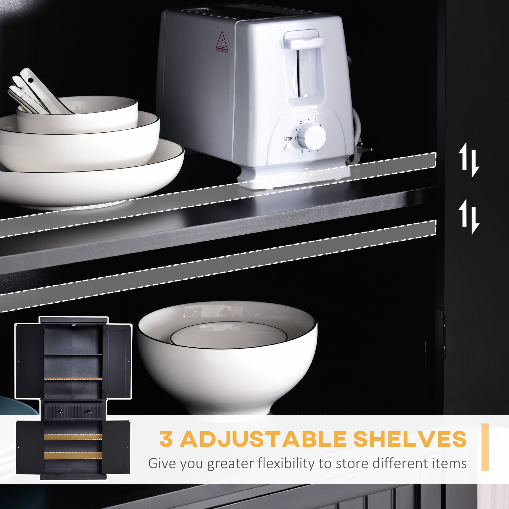 This HOMCOM tall storage cabinet is an ideal solution for any kitchen. Made from MDF with reinforced backboards, it is ideal for storing all your kitchen items from accessories, utensils, dry good and even your cookbooks. The kitchen larder cupboard has 4 doors with 3 adjustable shelves for you to position as required. The door handles and knobs are having a brushed nickel finish, giving the unit elegance and style. This is a great unit to have to match any room décor.