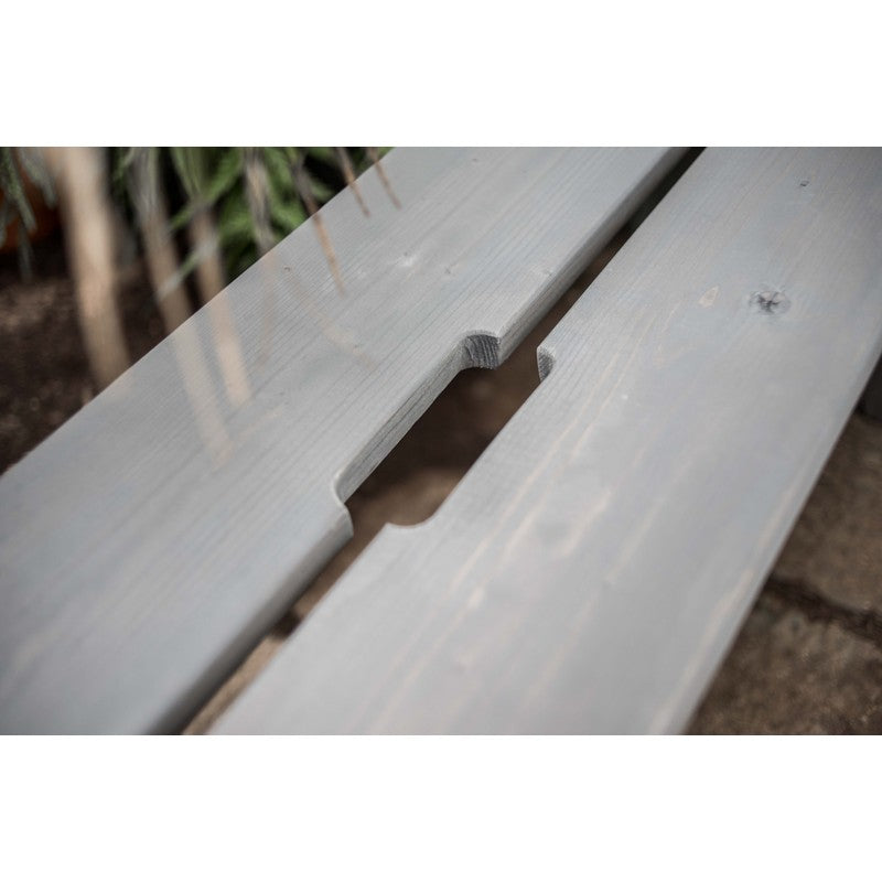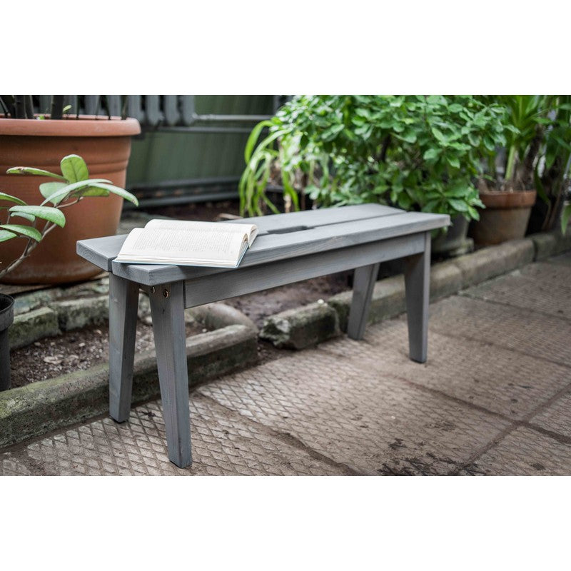 The series ?V-FRO? provides a combination of ergonomic design and solid craftsmanship suited for outdoor use. Produced from durable FSC Pine and Spruce, all products are stained in contemporary grey paint. This compact garden bench is a space-efficient seat for two people. The seat boards are cleverly angled inwards to give extra support to users as they sit outdoors. The smaller footprint makes it ideal for smaller outdoor spaces such as small courtyards or balconies. With a handle hole in the centre of the bench, the product can be easily transported to another area of the garden. The bench comes flat packed with an easy to assemble design.