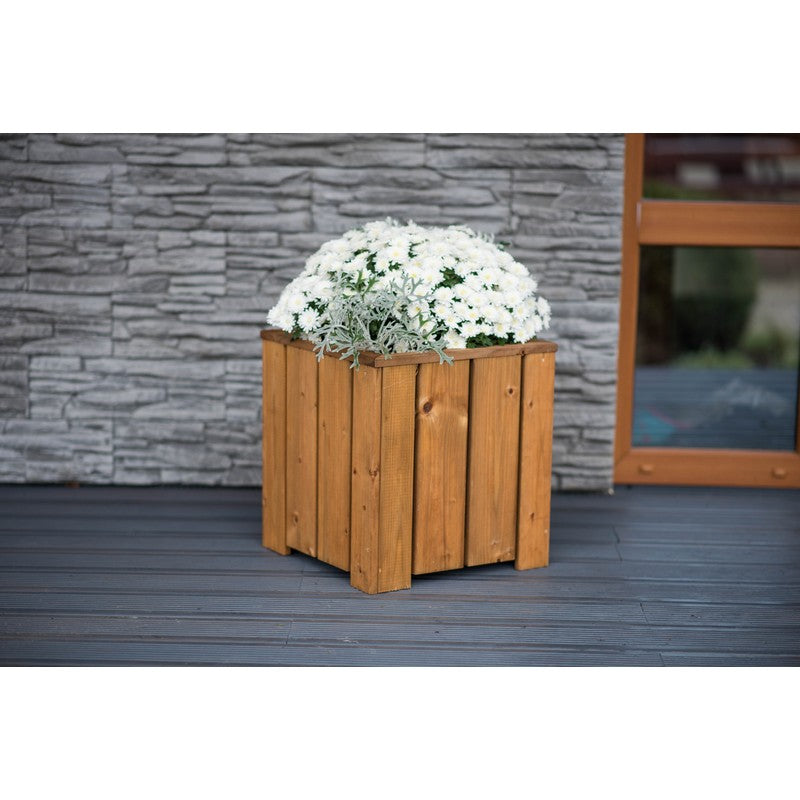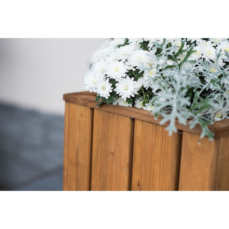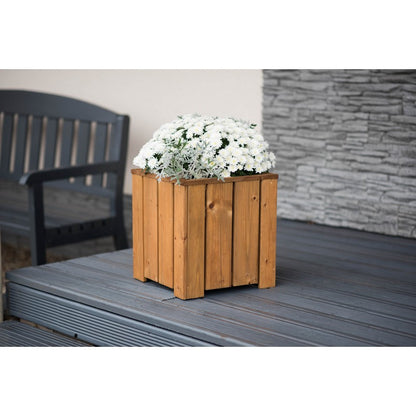 The stylish Valmiera Square Planter is a solid wooden planter manufactured from FSC certified timber. This square wooden planter box is ideal for displaying colourful flowers and plants. The design is constructed well with a top lip that protects the planter structure and the stems of flowers inside. The planter is protected using pressure treatment in a brown finish. As well as this protection, a geotextile inner lining is supplied to retain soil in the box once planted. Product Specification Product Type: Planter Material: Wood Colour: Brown Pattern / Finish: Pressure Treated Class Iii Assembly Required: Yes Additional features Pressure treated for protection against wood rot and decay. Made from sustainably sourced FSC timber from well managed forests. Flat packed with easy to use instructions. Aftercare instructions included Dimensions: 37 (H) x 35 (W) x 35 (D) cm Lifestyle images and accessories shown are for illustration purposes only. Delivery Restrictions We are unfortunately unable to accept orders for being with the following post codes: AB,BT,CF,DD,DG,DT6-DT8,EH,EX,FK,G1-G9,GY,HS,IM,IV,JE,KA,KW,KY,LD,LL,ML,PA,PH,PL,PO30-PO41,SA,TA,TD,TQ,TR & ZE. About EKJU With a team of dedicated craftsmen with a love for nature and craftsmanship, always using quality materials to create long lasting products and made from sustainably sourced FSC (FSC License Code: FSC-C002739) timber material. Crafted furniture with respect for Nature. By working with live wood, we can keep our promise of being environmentally friendly, bring people together and closer to nature. EKJU respects and has appreciation for nature makes us conscious. And our consciousness determines our environmentally friendliness. By working with live wood, we can keep our promise of being environmentally friendly, because of its high density and durable qualities.