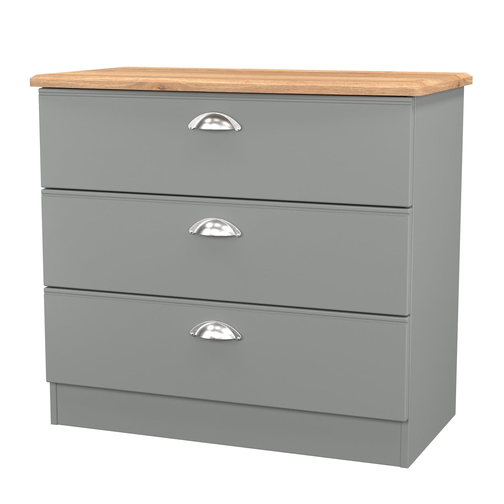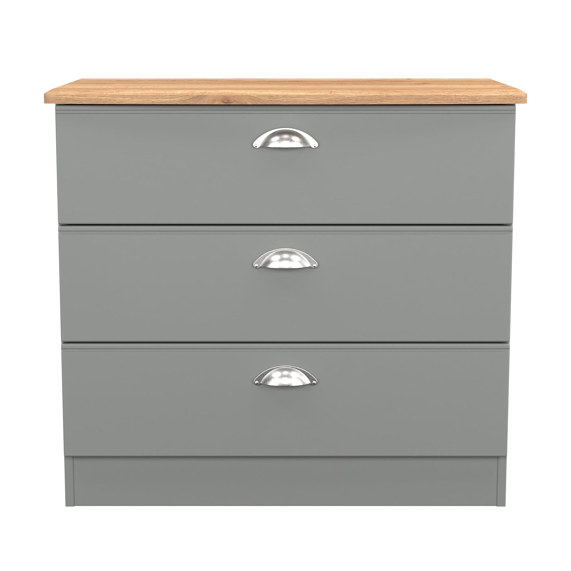 Victoria Chest of Drawers Grey & Light Oak 3 Drawers 77cm