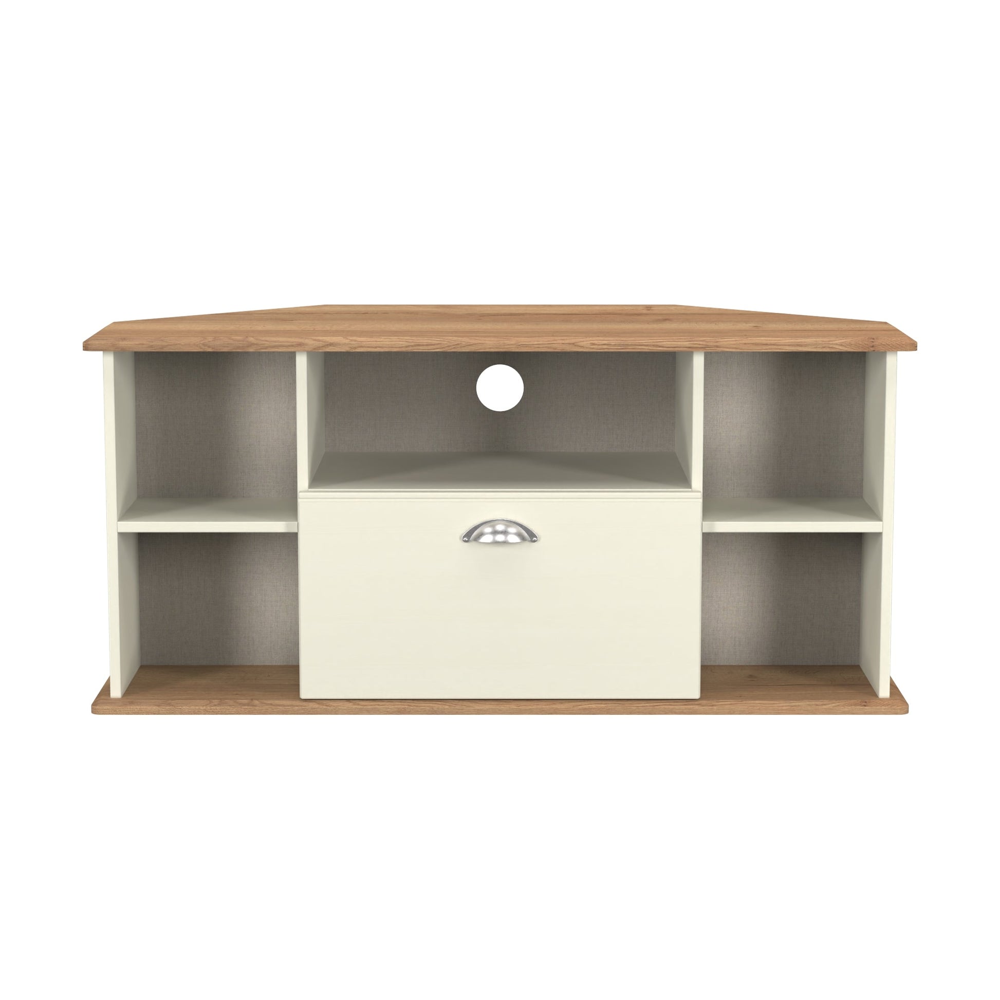 Victoria Corner Corner TV Unit Cream & Light Oak 5 Shelves 1 Drawer 112cm