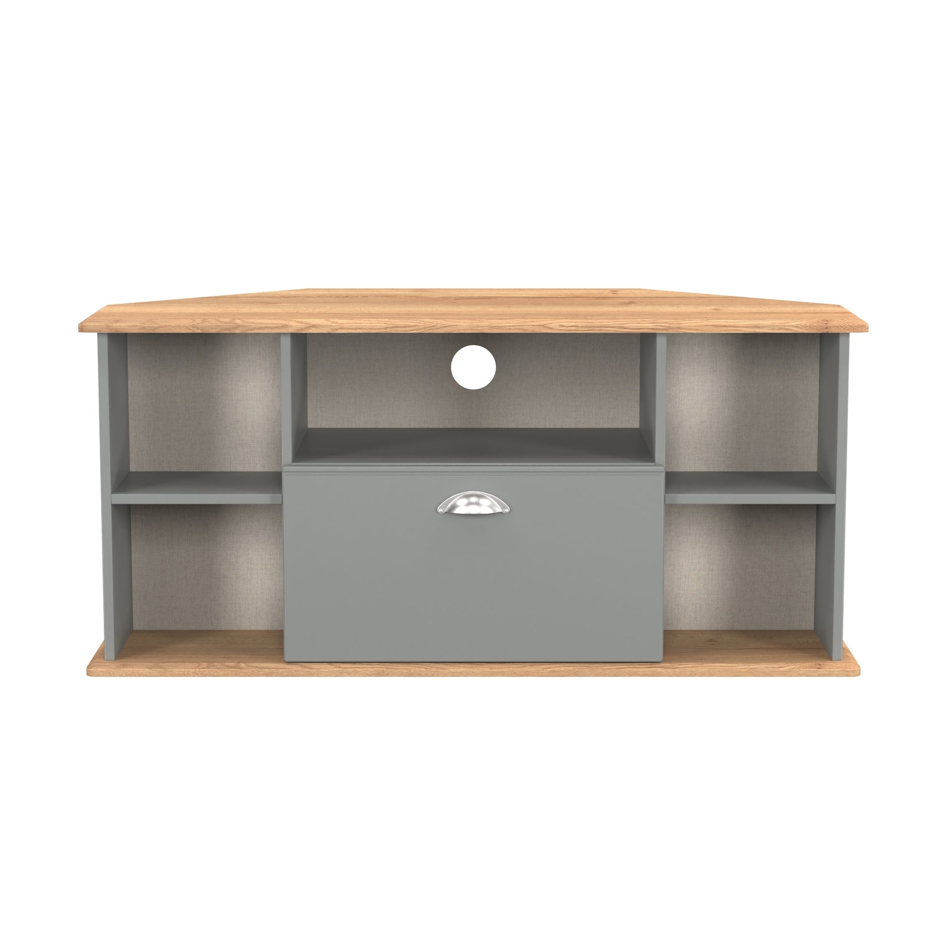 Victoria Corner Corner TV Unit Grey & Light Oak 5 Shelves 1 Drawer 112cm