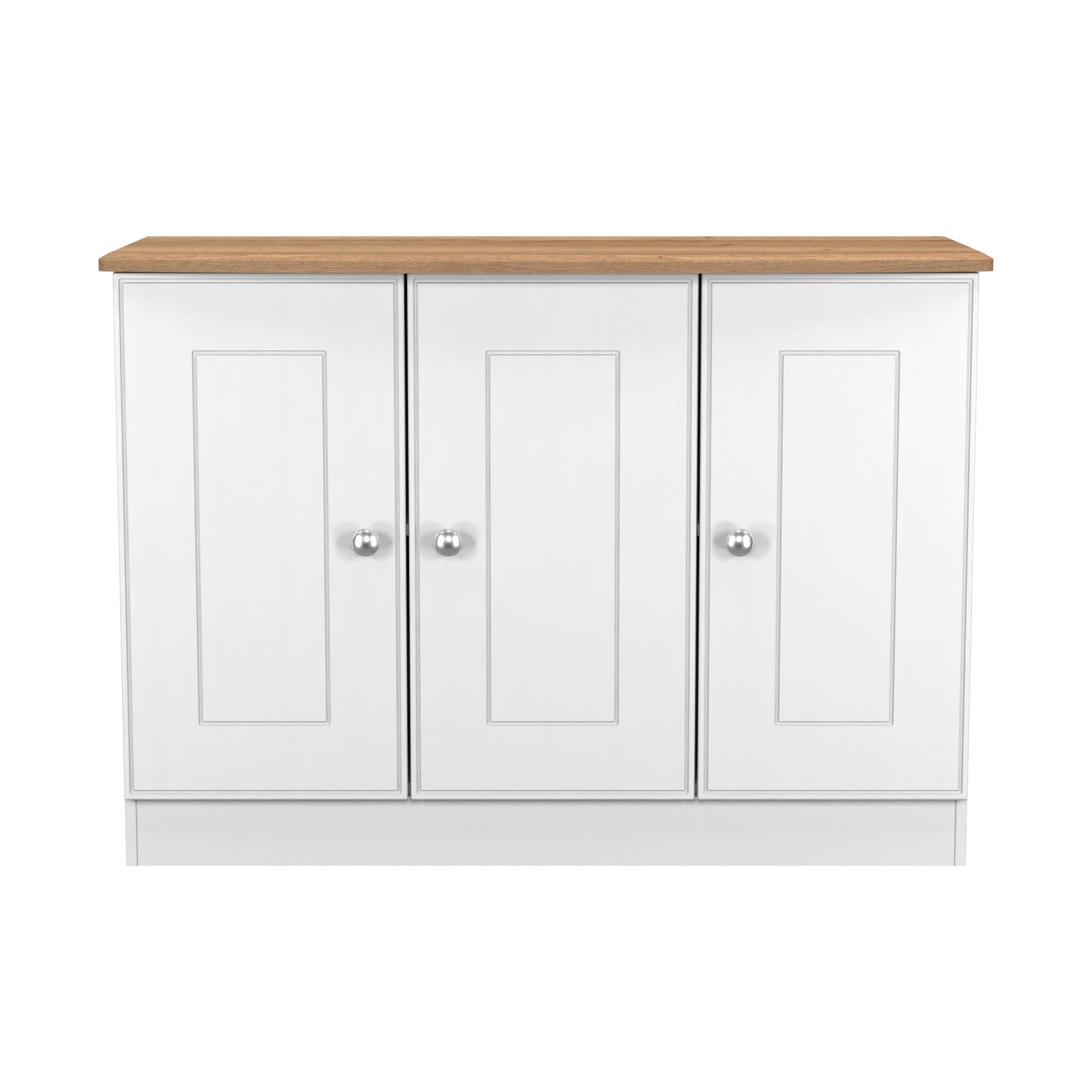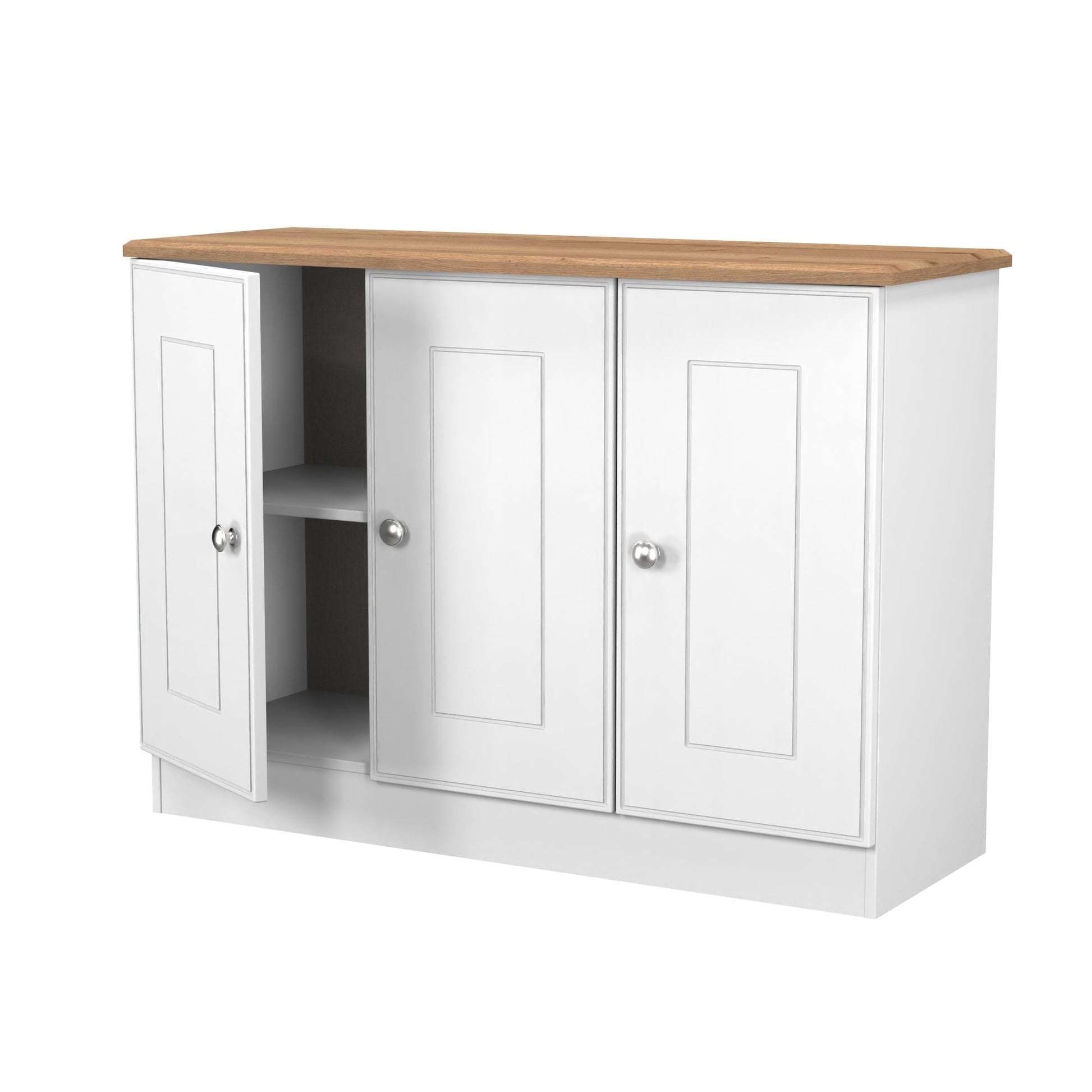 Victoria Large Sideboard White & Light Oak 3 Doors 112cm