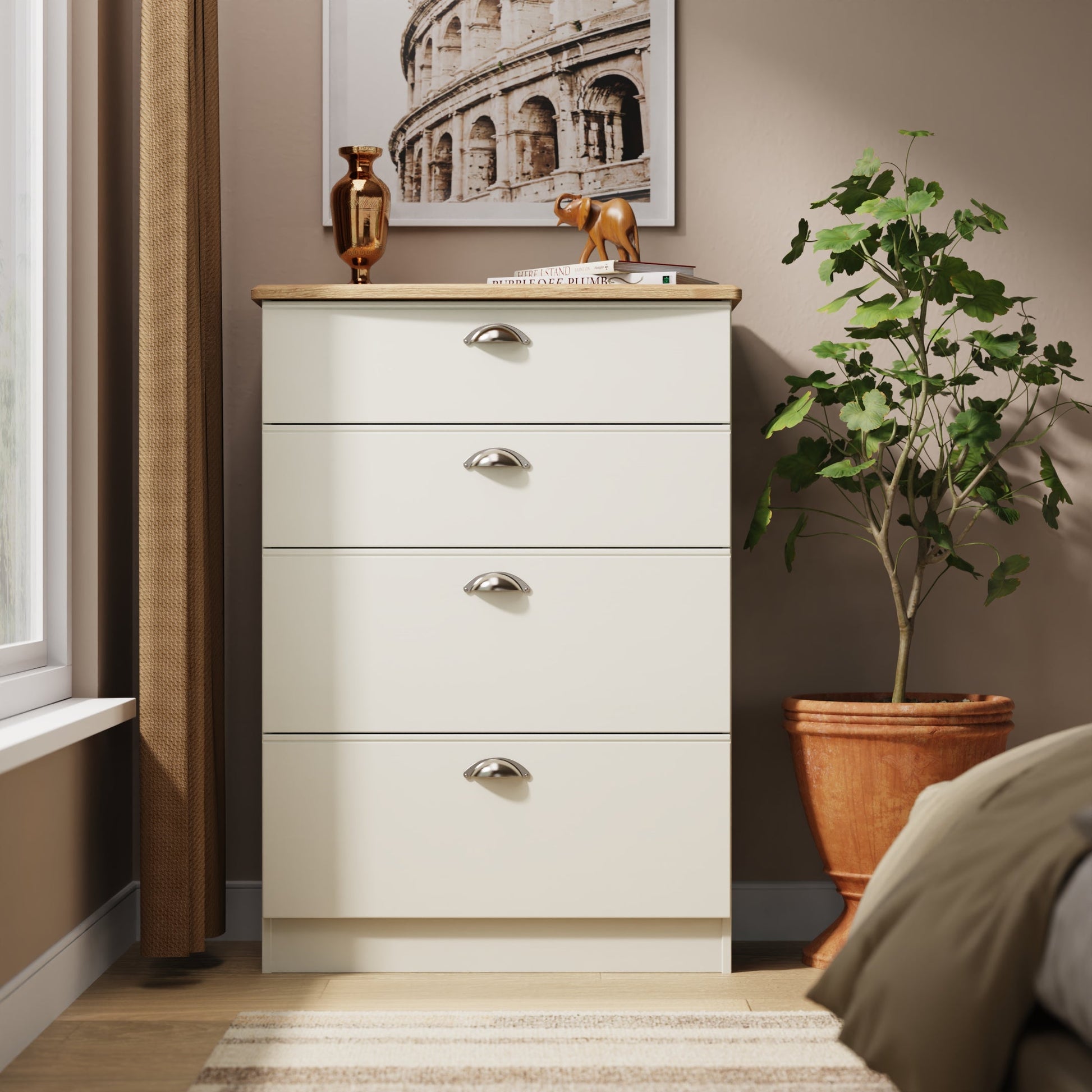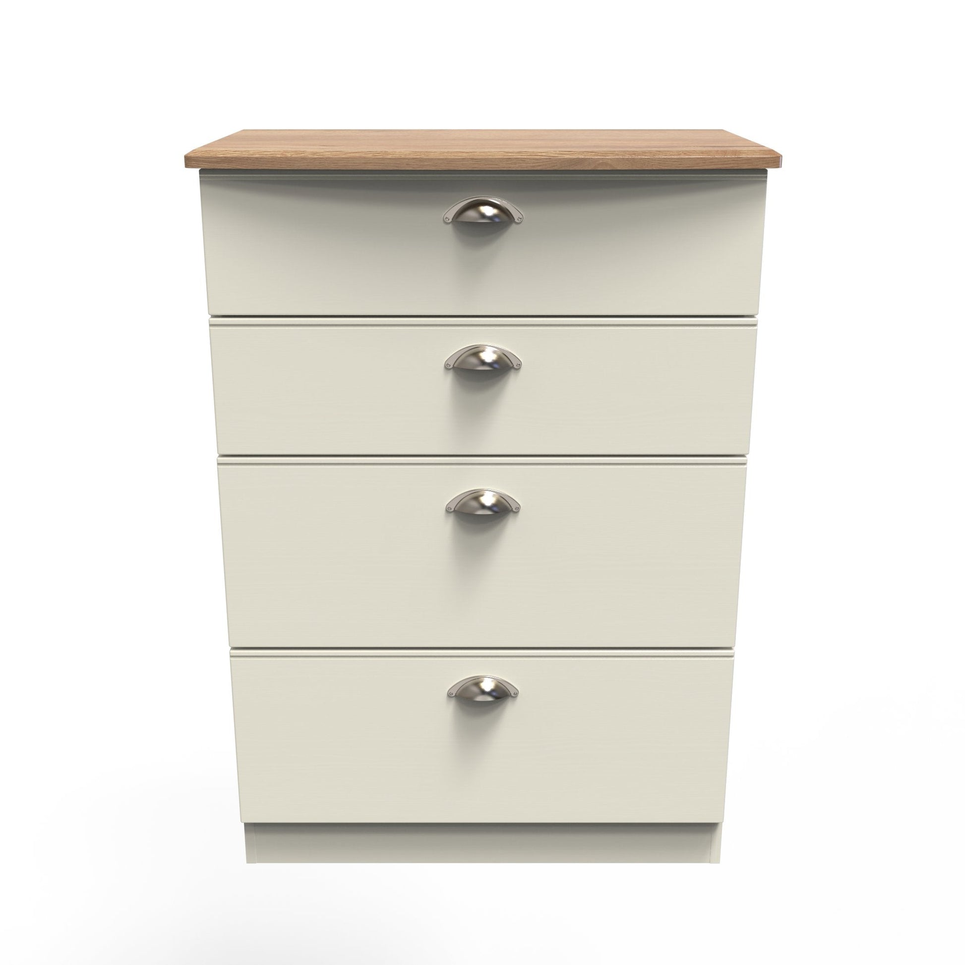 Victoria Tall Chest of Drawers Cream & Light Oak 4 Drawers 77cm