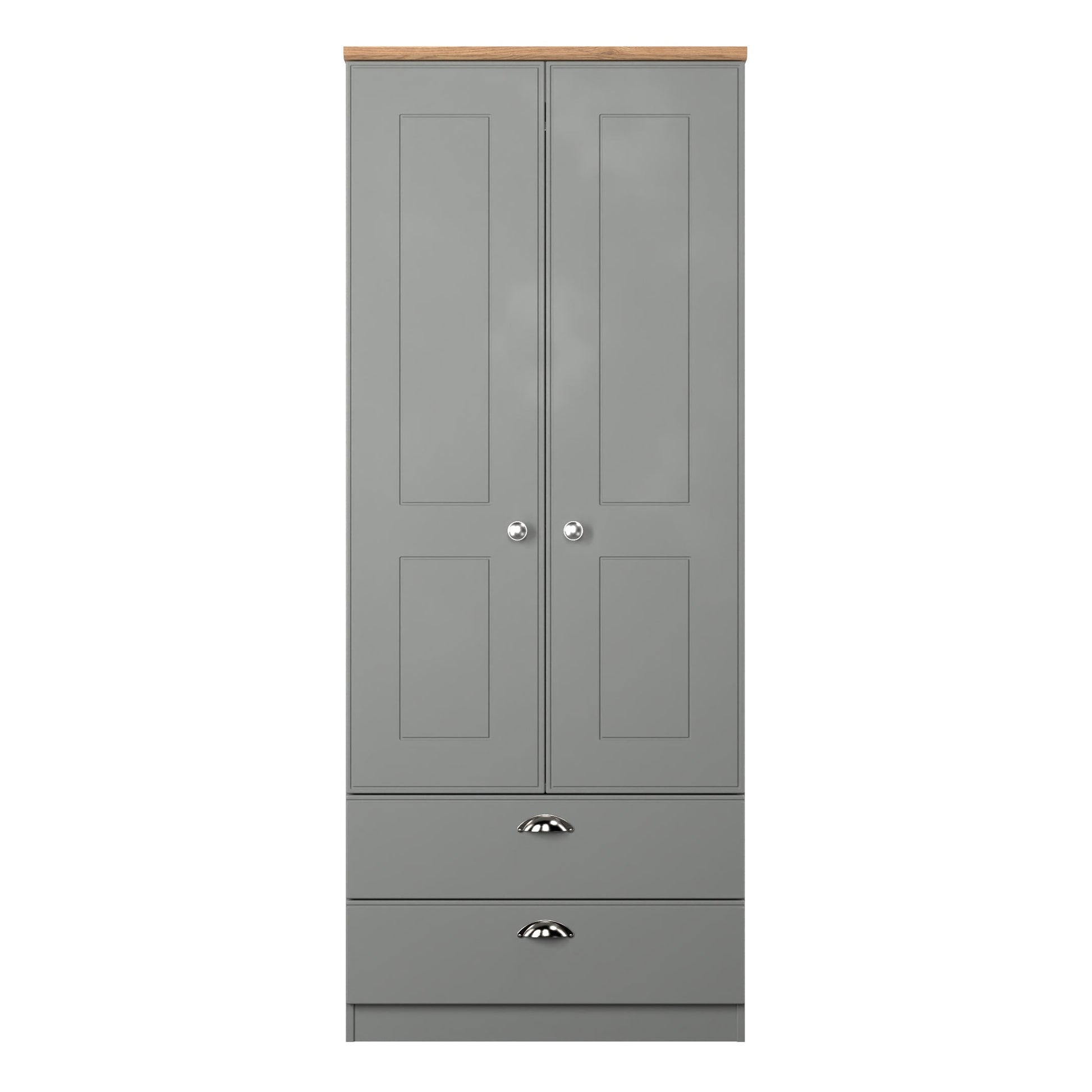 Victoria Tall Wardrobe Grey & Light Oak 2 Doors 2 Drawers 74cm