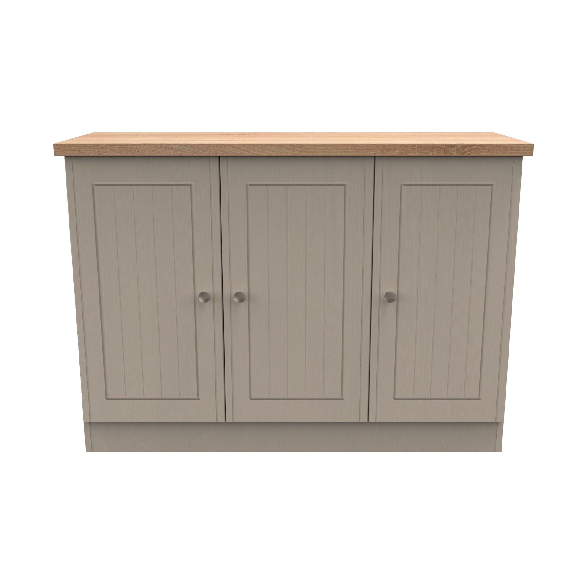 This 3 door wide storage cupboard has internal shelves and is perfect for any living room, dinning room or louge. Could also be used as a TV/Media stand or side board. This classic, elegant range is available in a variety of painted wood finishes with natural wood effect tops and stylish chrome handles on all doors and drawers. This range boasts a classic and traditional design which will compliment a variety of traditional home décors. All our furniture is made to order in the United Kingdom, to the highest quality. It is delivered within 10 working days direct to your location of choice by one of our two man delivery teams, and comes fully assembled (although legs may be removed to prevent damage in transit). Part of the Vienna Collection.