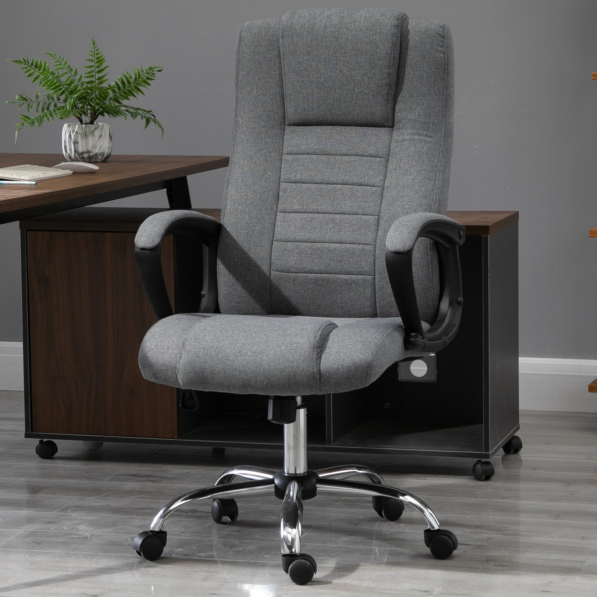 Vinsetto Linen Upholstered Tilting Home Office Chair Grey