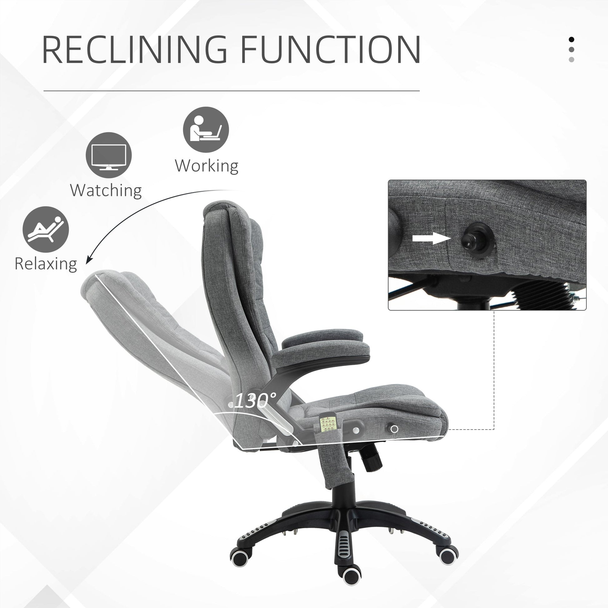 Vinsetto Massage Recliner Chair Heated Office Chair with Six Massage Points Linen-Feel Fabric 360° Swivel Wheels Grey
