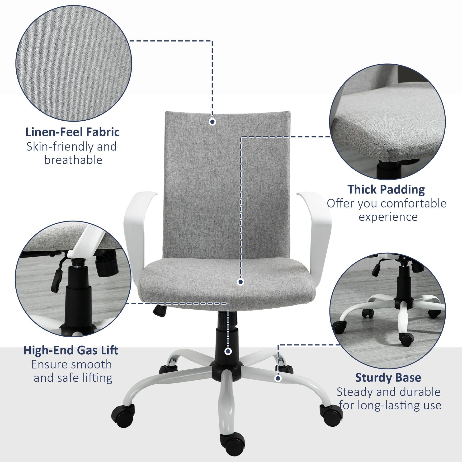 Vinsetto Office Chair Linen Swivel Computer Desk Chair Home Study Task Chair with Wheels
