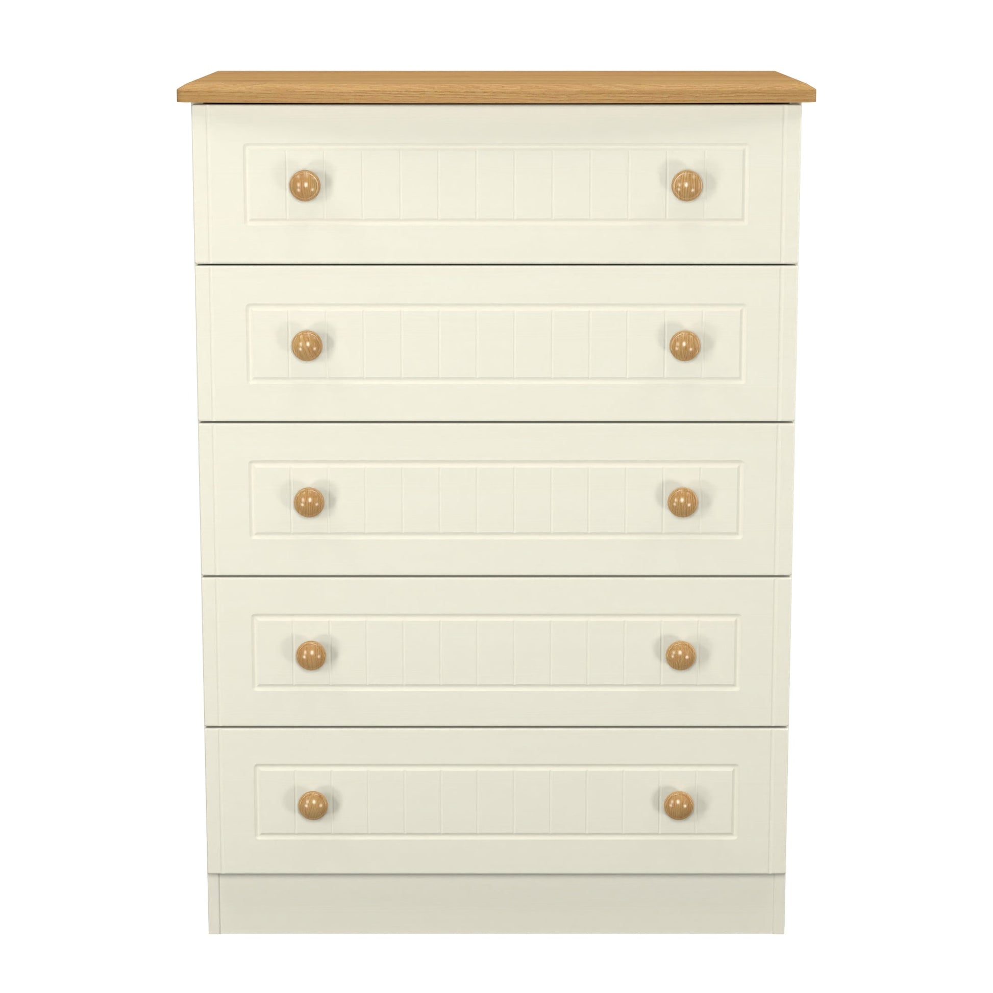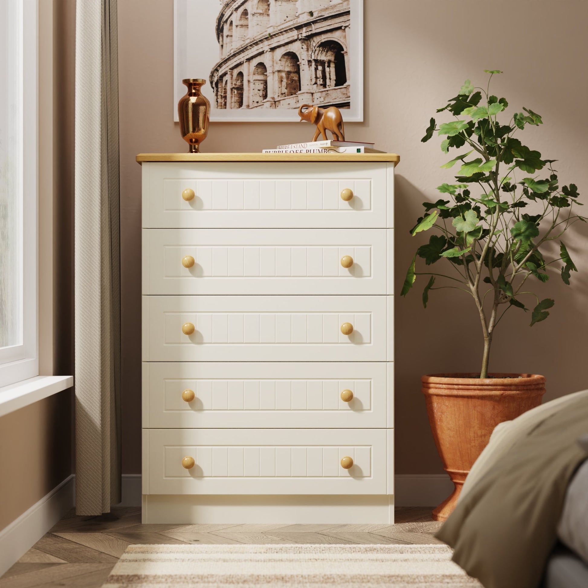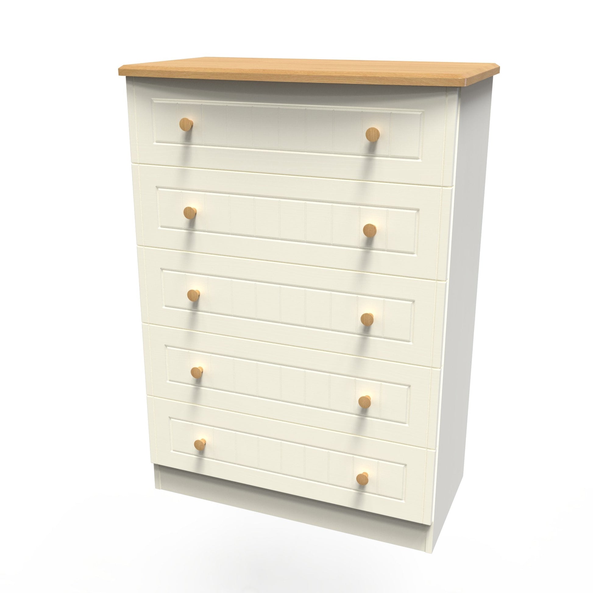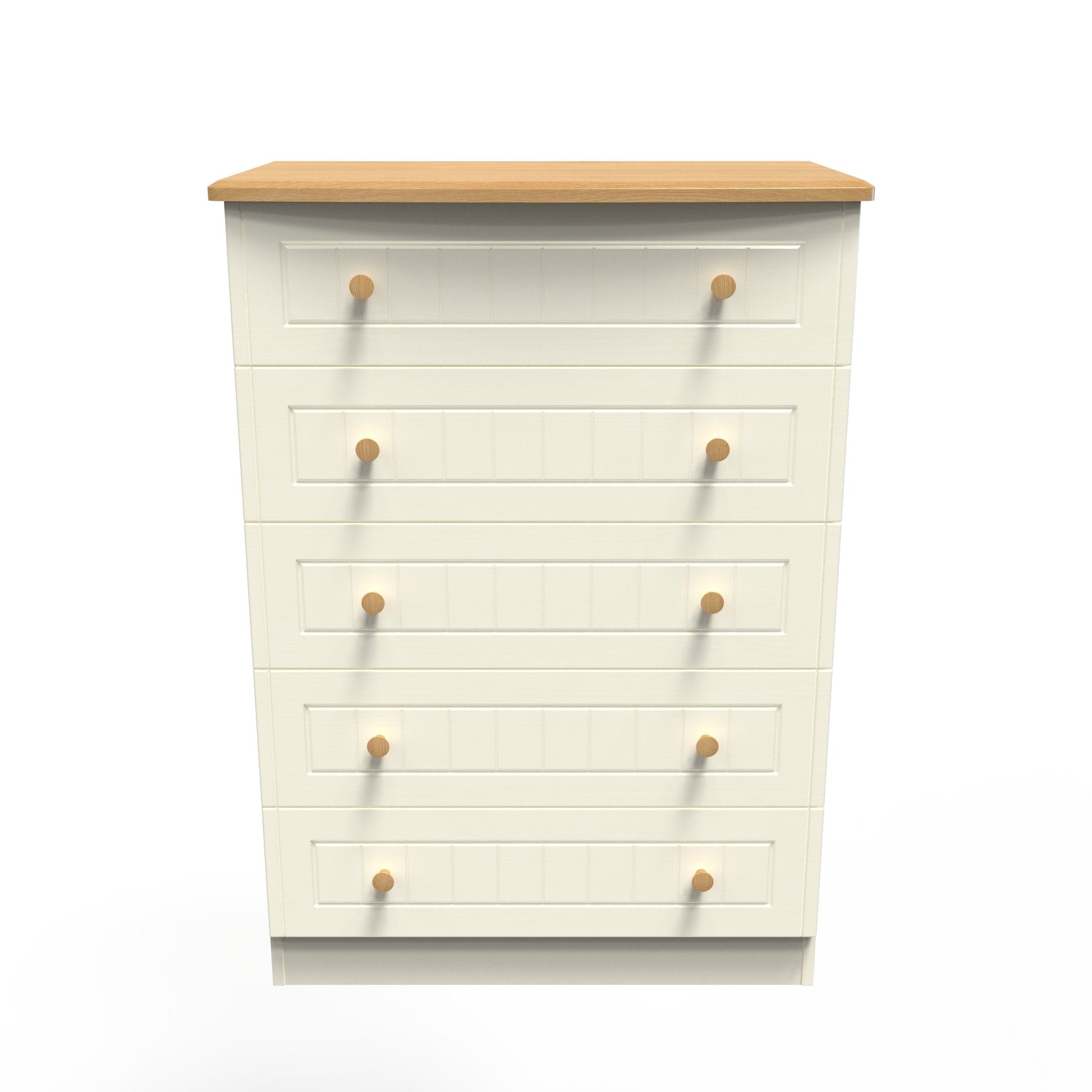 Warwick Tall Chest of Drawers Cream & Oak 5 Drawers 77cm