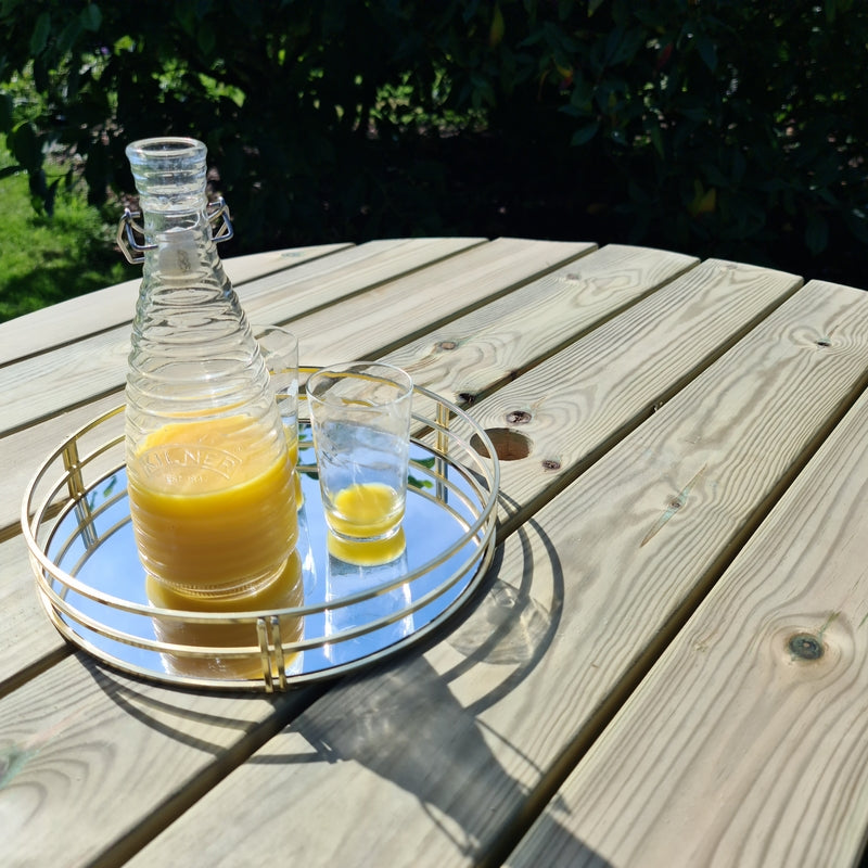 Wood, with the right care and attention, solid wooden garden furniture can last a lifetime. It doesnt rust like metal and neither will it lose its colour in the sun like some plastic garden furniture. You and 7 others will be able to relax, enjoy snacks, and chat in the sunshine.