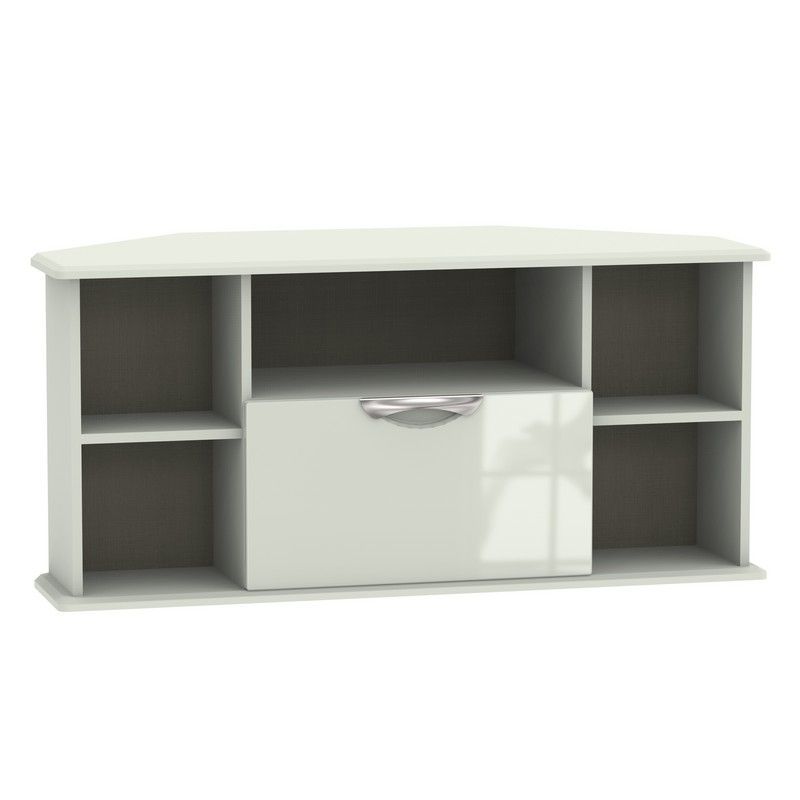 Weybourne Corner TV Unit Off-white 5 Shelves 1 Drawer