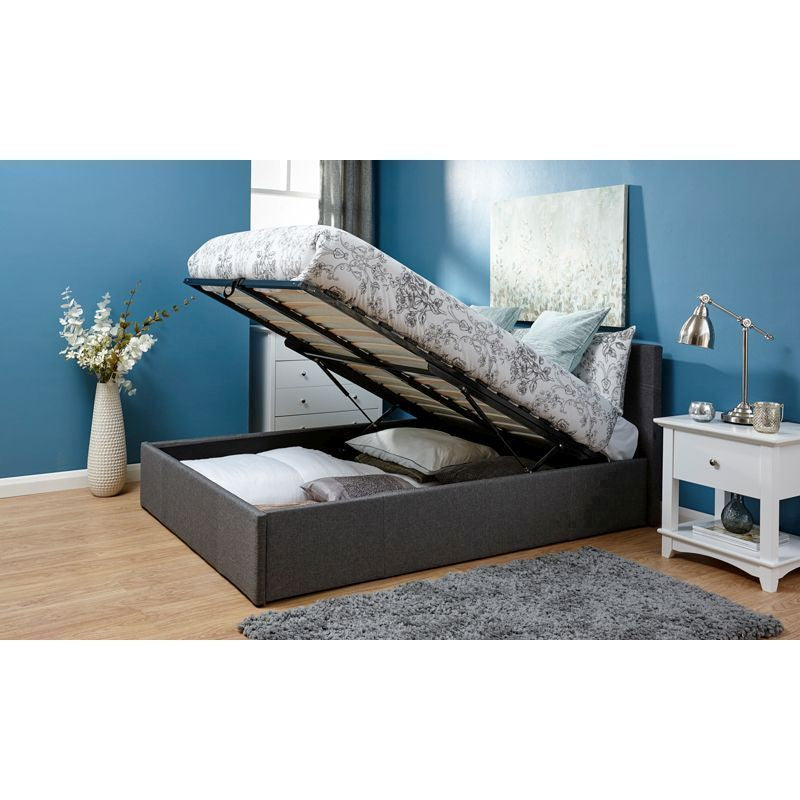 Winston King Size Ottoman Bed Fabric Grey 5 x 7ft