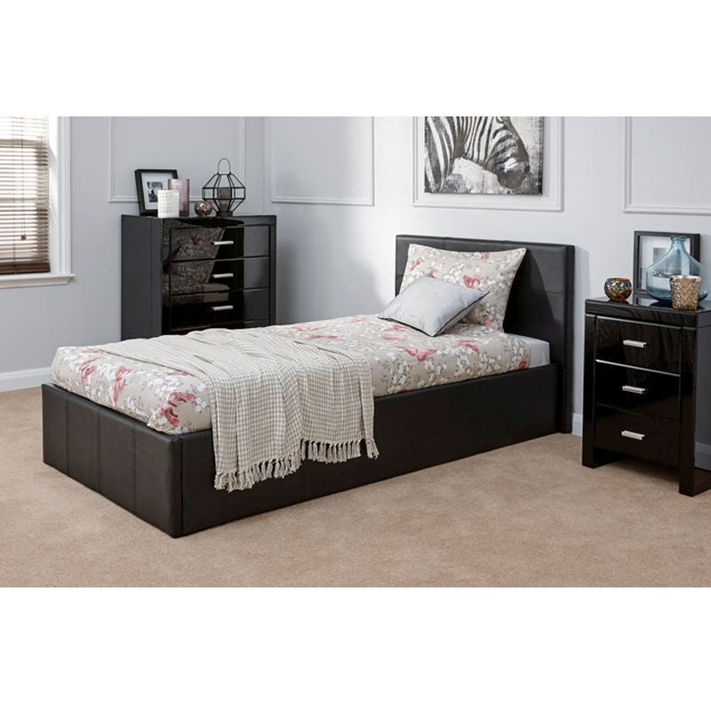 Winston Single Ottoman Bed Faux Leather Black 3 x 7ft