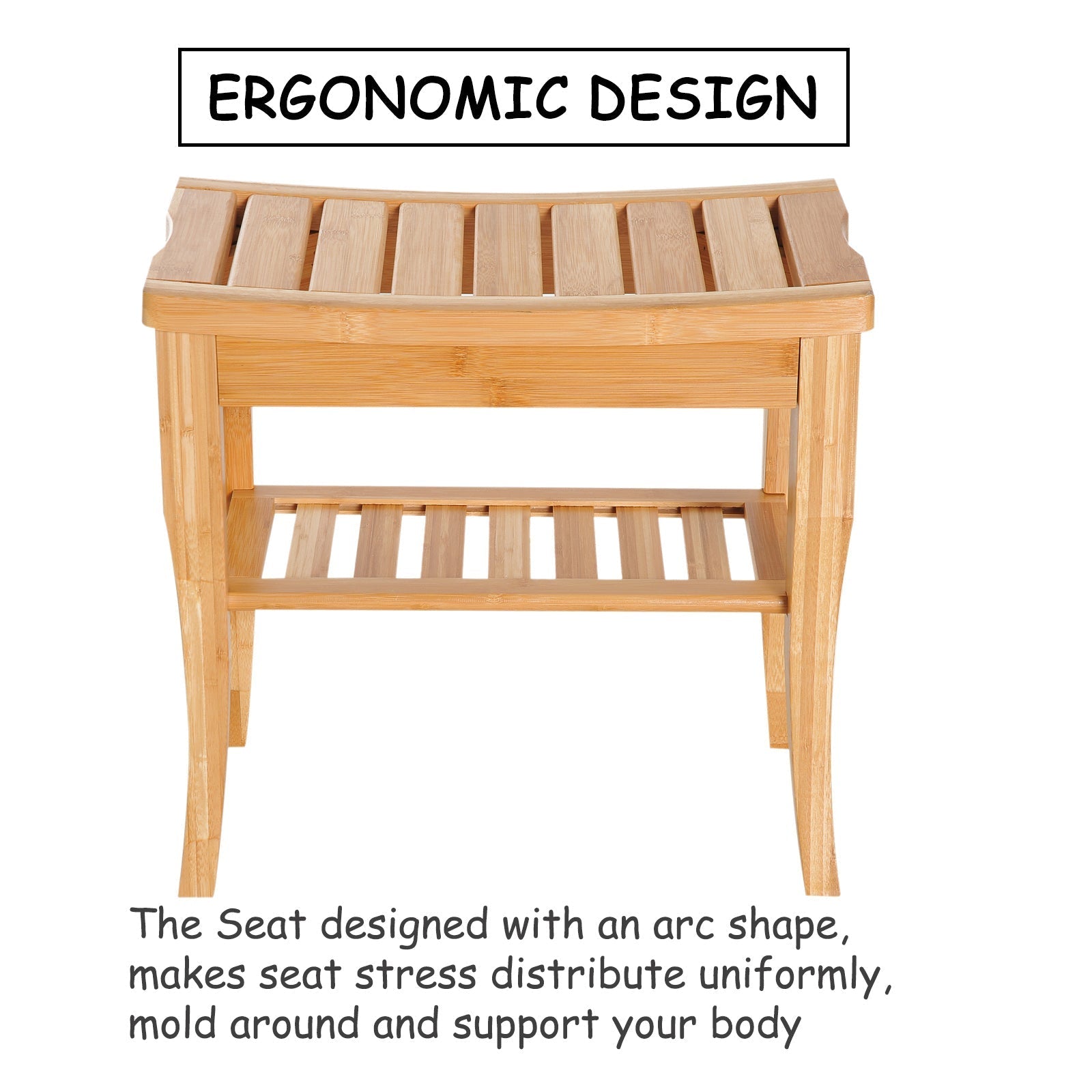 HOMCOM’s shower bench with a wide variety of usage will bring you convenience and style around your home. This Chair is made from 100% natural bamboo materials. Bamboo is naturally water resistant and anti-microbial for long-lasting use, also makes it easy to clean up. With a lower shelf to store all your spa accessories, this chair is perfect for bathroom, living room, spa and more.