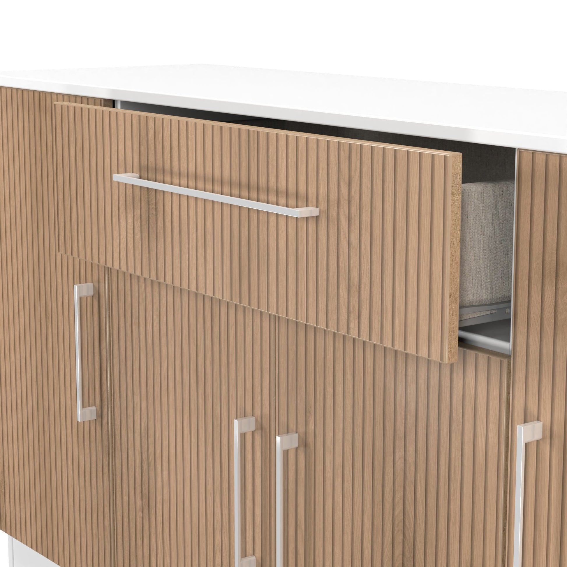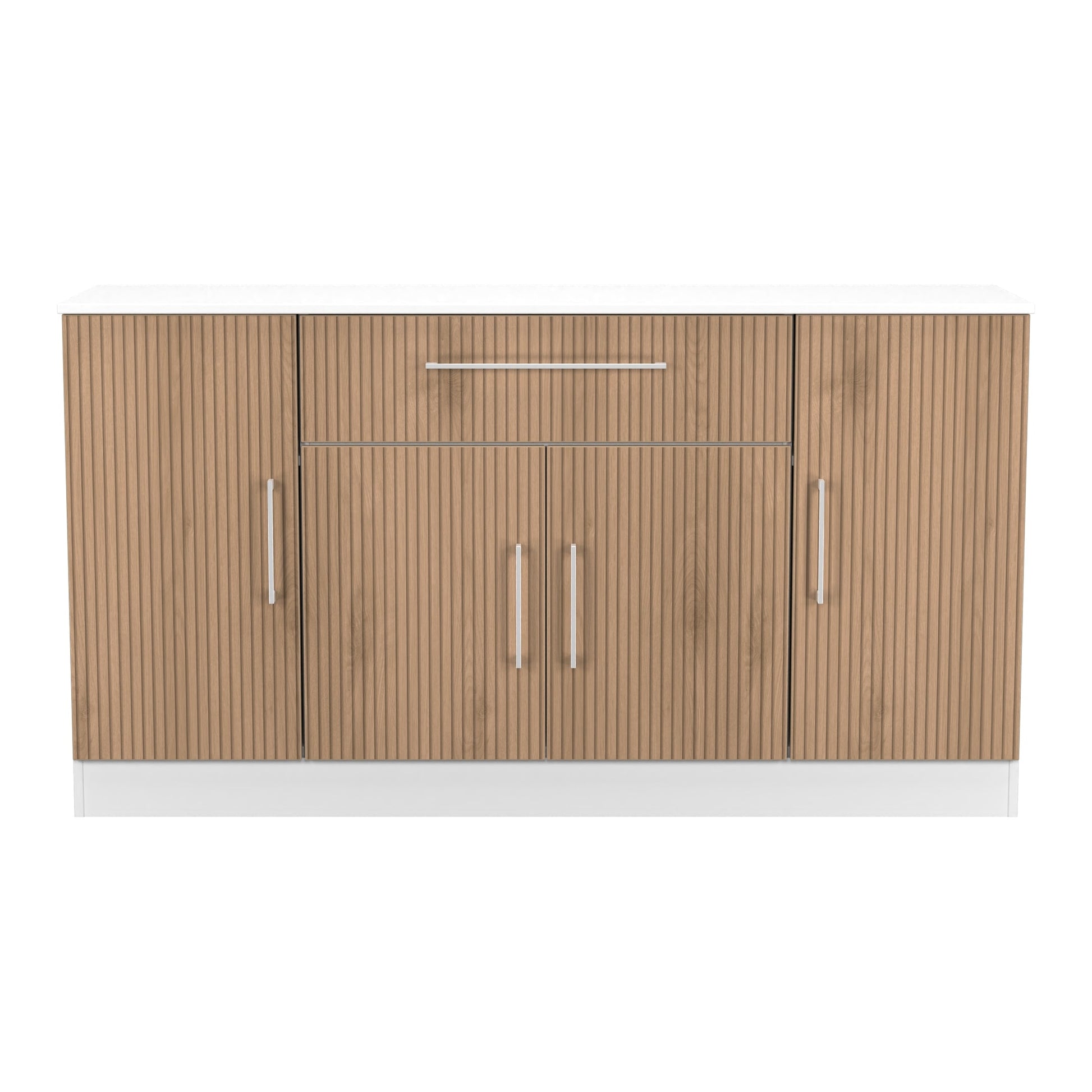 Worcester Large Sideboard White & Light Oak 4 Doors 2 Shelves 1 Drawer 144cm
