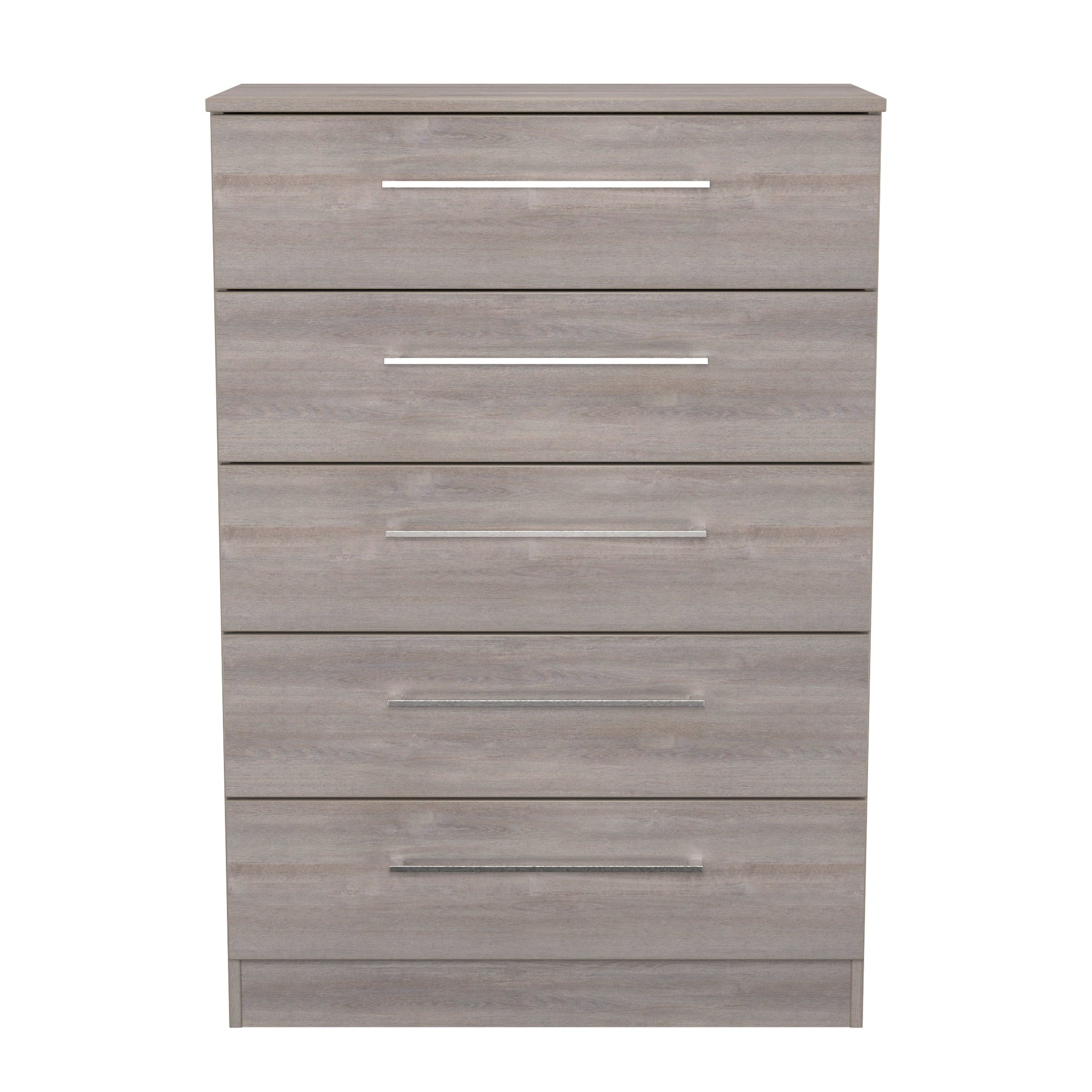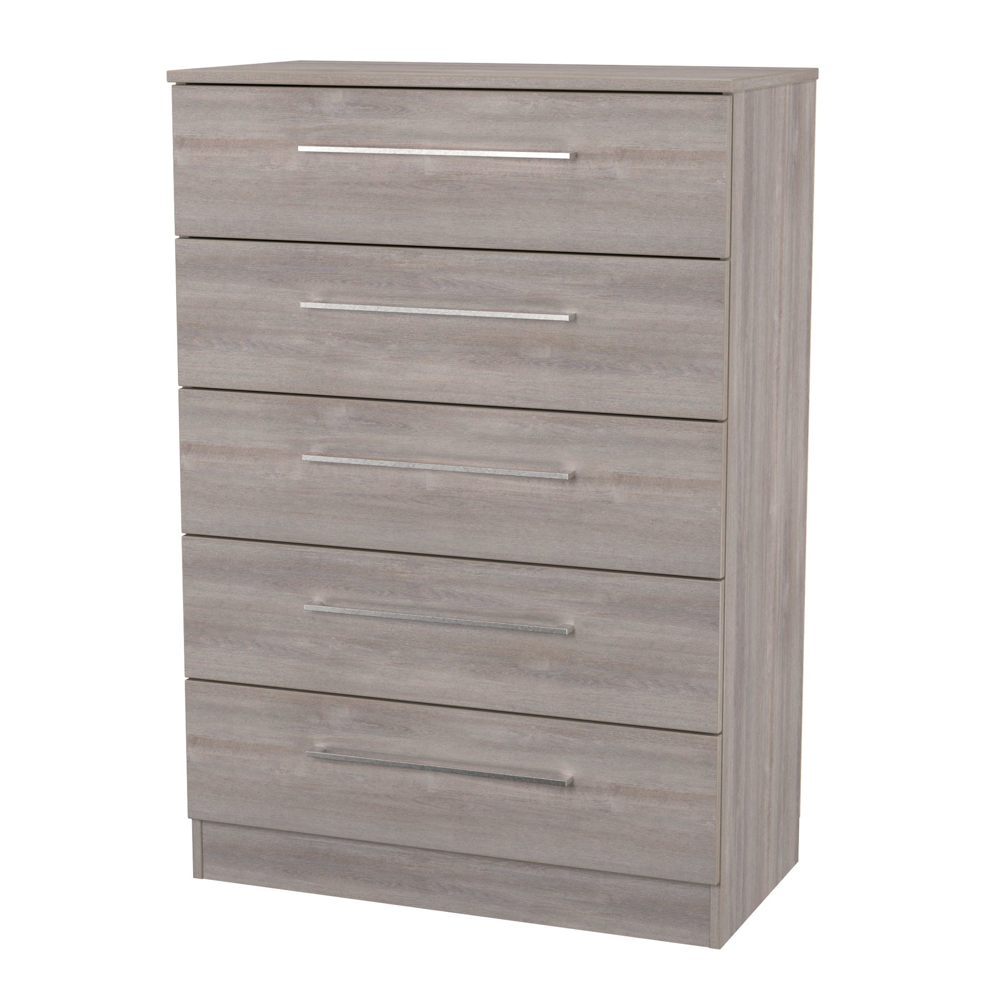 This chest of drawers from Swift offers great value along with first-rate quality and is ideal for those who love to sit back and enjoy a thoughtfully-planned living space. A dependable drawer unit which is expertly made to a time-honoured design, this piece will provide an outstanding enhancement to your sleeping area. In a subtle light grey colour that will fit your existing decor beautifully.