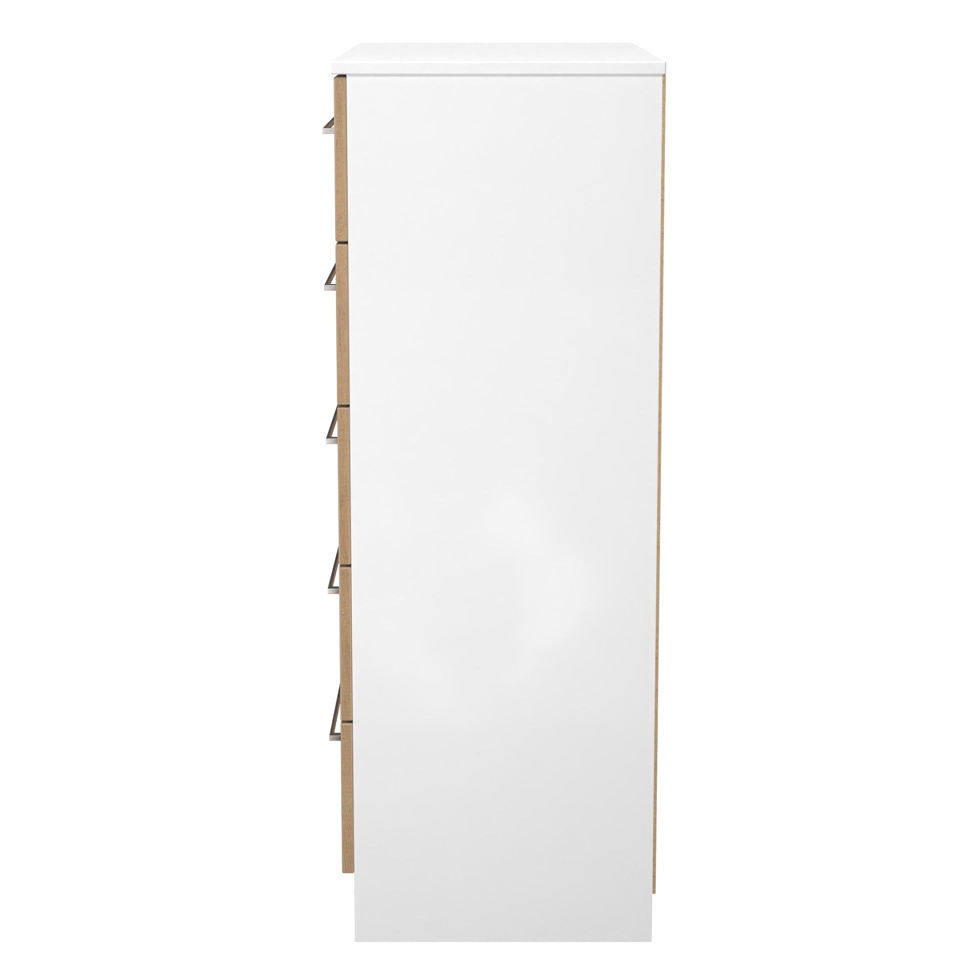 Worcester Tall Chest of Drawers White & Light Oak 5 Drawers 74cm