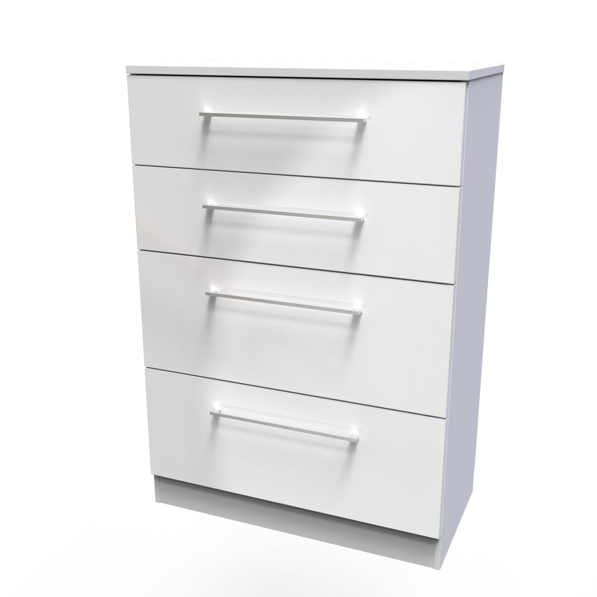 This deep 4 drawer chest of drawers is practical and stylish. Perfect for any home as a free standing storage unit. A elegant modern range, with solid metal pull bar handles and comes in a range of scratch resistant gloss or matt finishes. All our furniture is made to order in the United Kingdom, to the highest quality. It is delivered within 10 working days direct to your location of choice by one of our two man delivery teams, and comes fully assembled (although legs may be removed to prevent damage in transit). Part of the Worcester Collection.