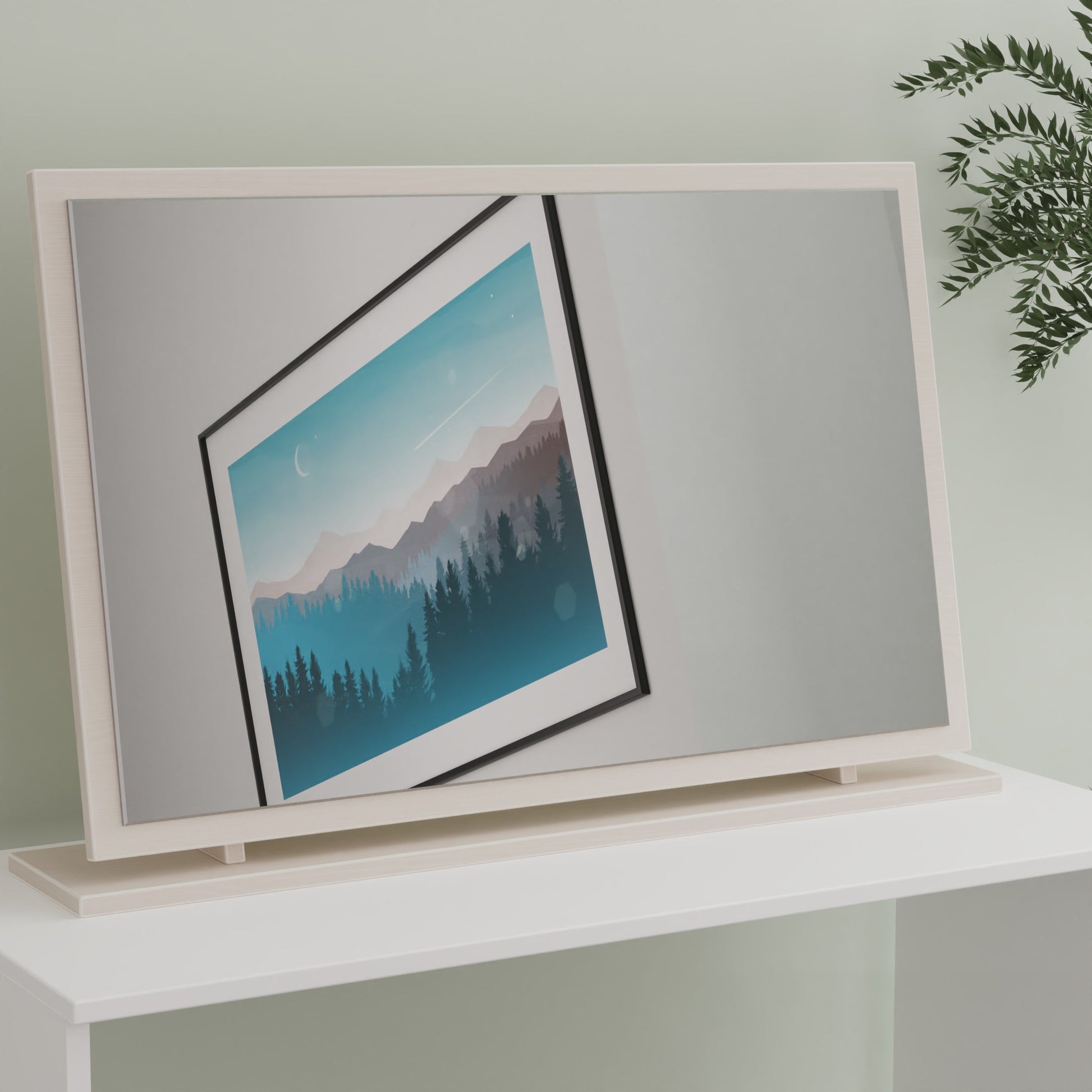 A large angled freestanding mirror with a framed edge. Ideal for any vanity unit or free standing atop a chest of drawers. Wood grain effect, panelled design, recessed fronts and chrome handles, this Range is a beautifully elegant collection. With this range you have the freedom to choose from a wide range of furniture configurations, allowing you to create the perfect combination to optimise your storage space. All our furniture is made to order in the United Kingdom, to the highest quality. It is delivered within 10 working days direct to your location of choice by one of our two man delivery teams, and comes fully assembled (although legs may be removed to prevent damage in transit). Part of the York Collection.