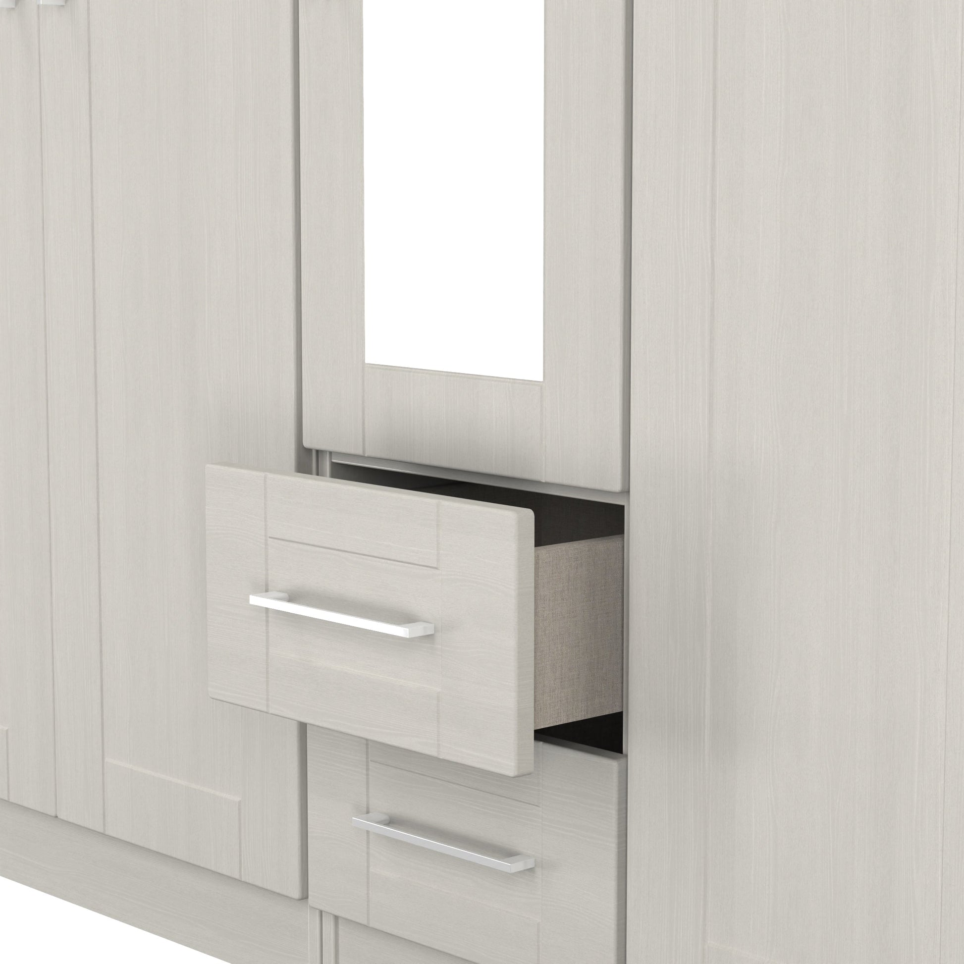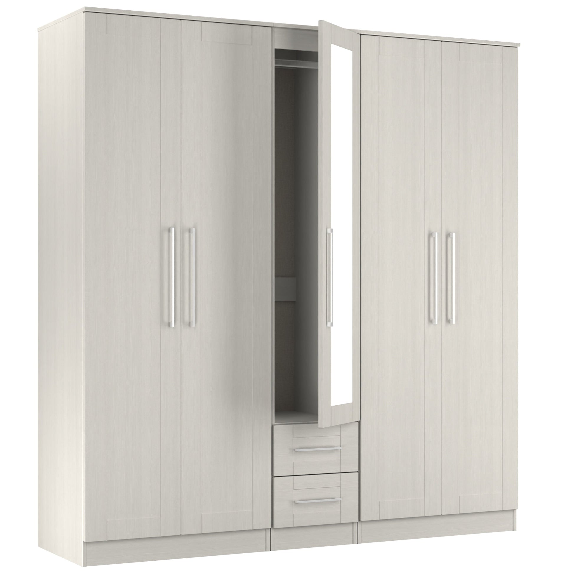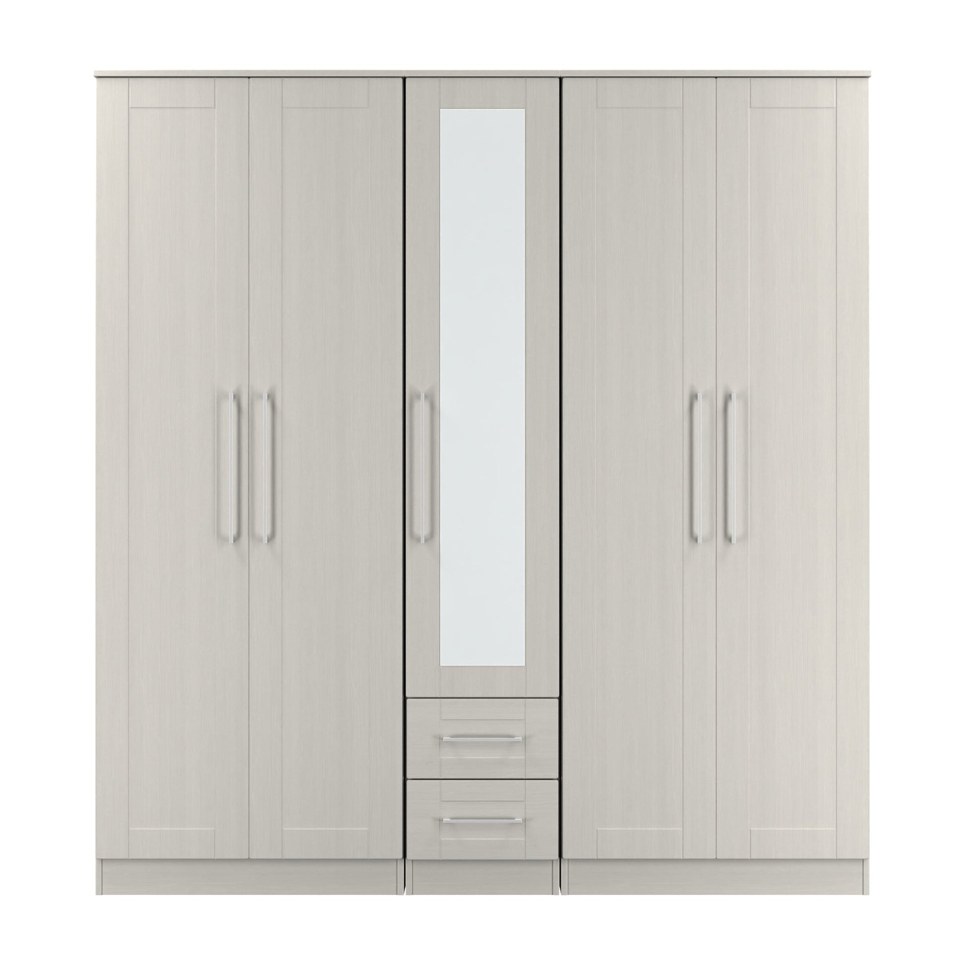 York Tall Mirror Wardrobe Grey 5 Doors 2 Shelves 2 Drawers 185cm
